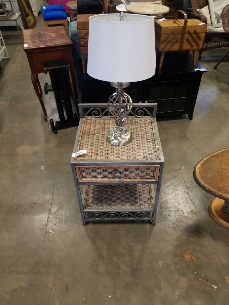 WICKER AND METAL ENDTABLE AND METAL TABLE LAMP