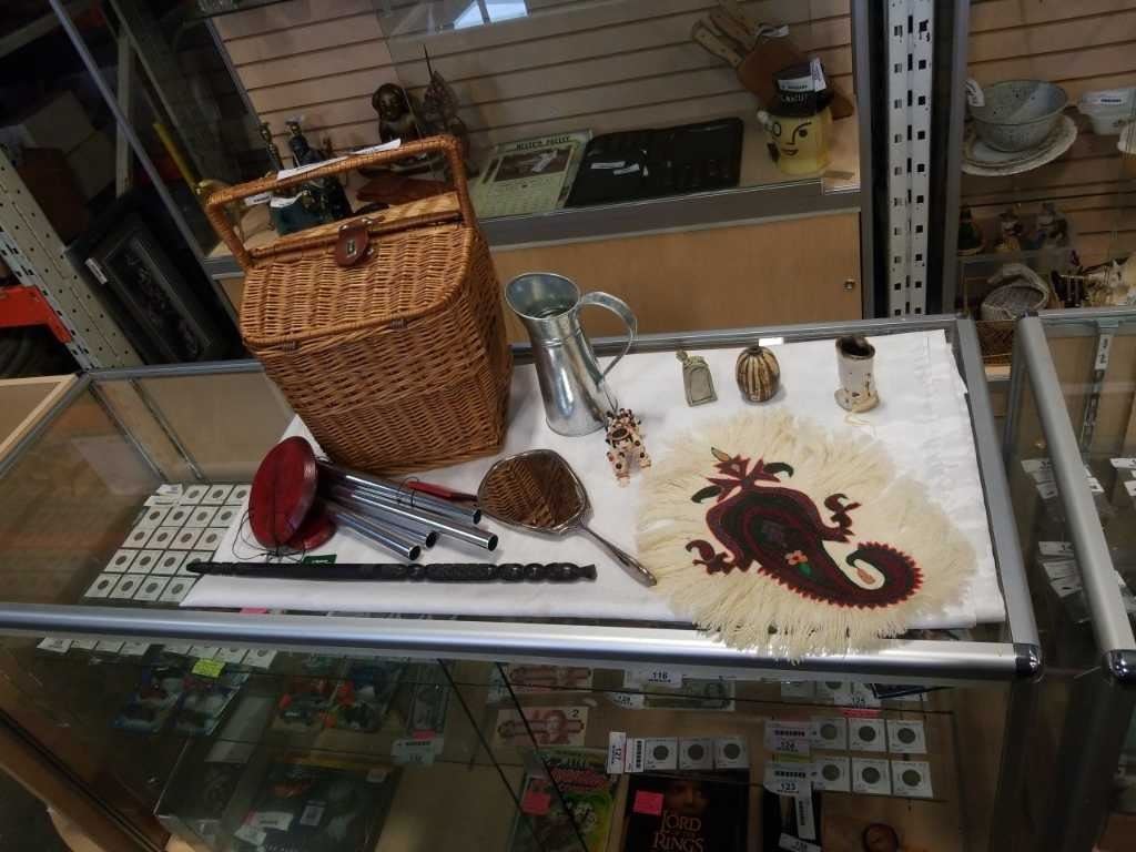WICKER BASKET, WIND CHIMES AND DECORATIONS