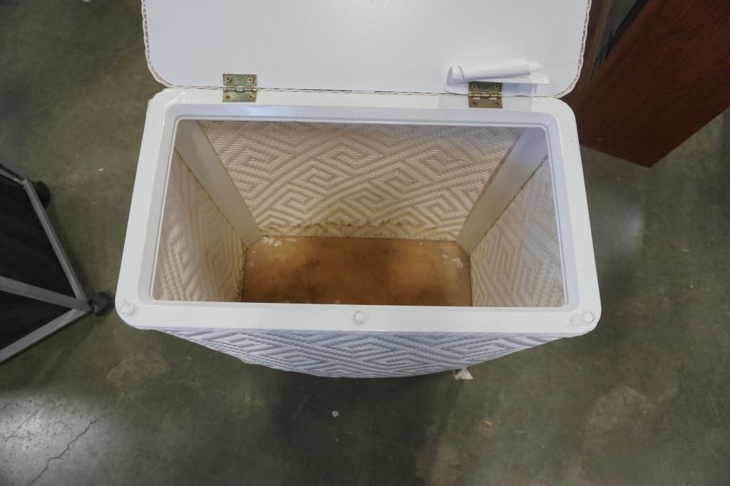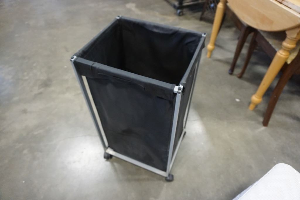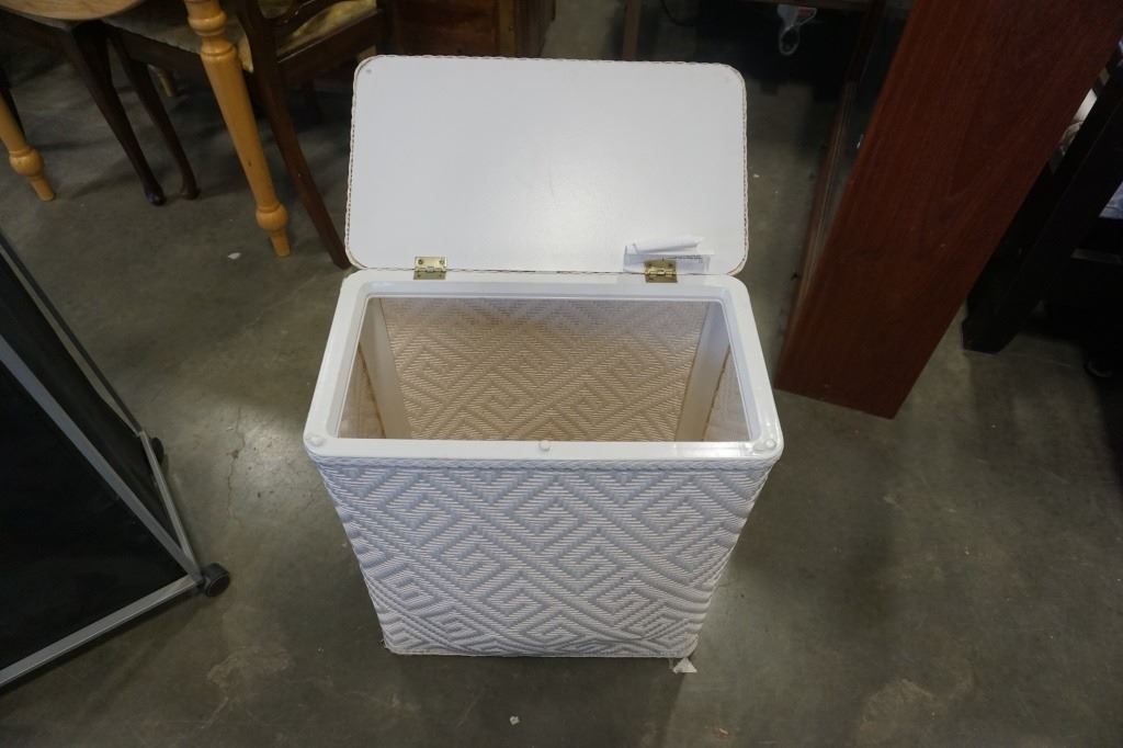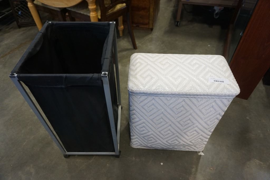 WICKER HAMPER AND BLACK FABRIC HAMPER
