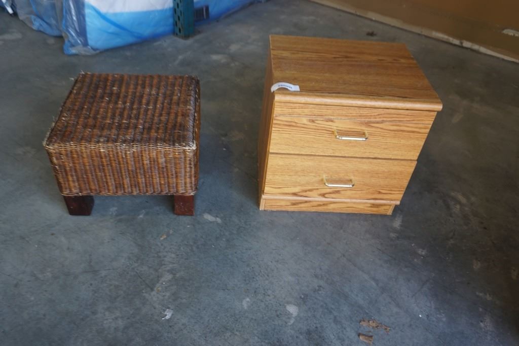 WICKER OTTOMAN AND 2 DRAWER NIGHTSTAND