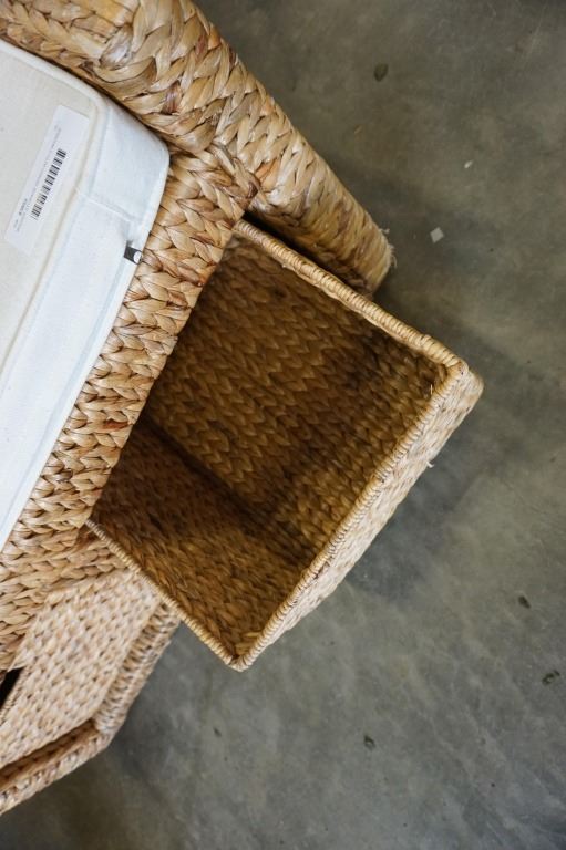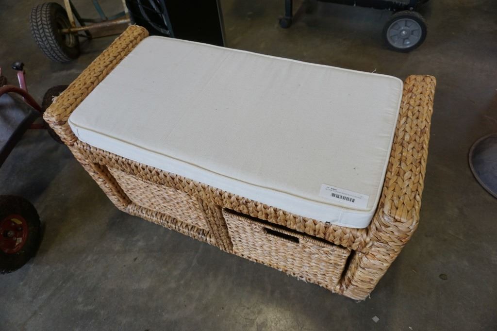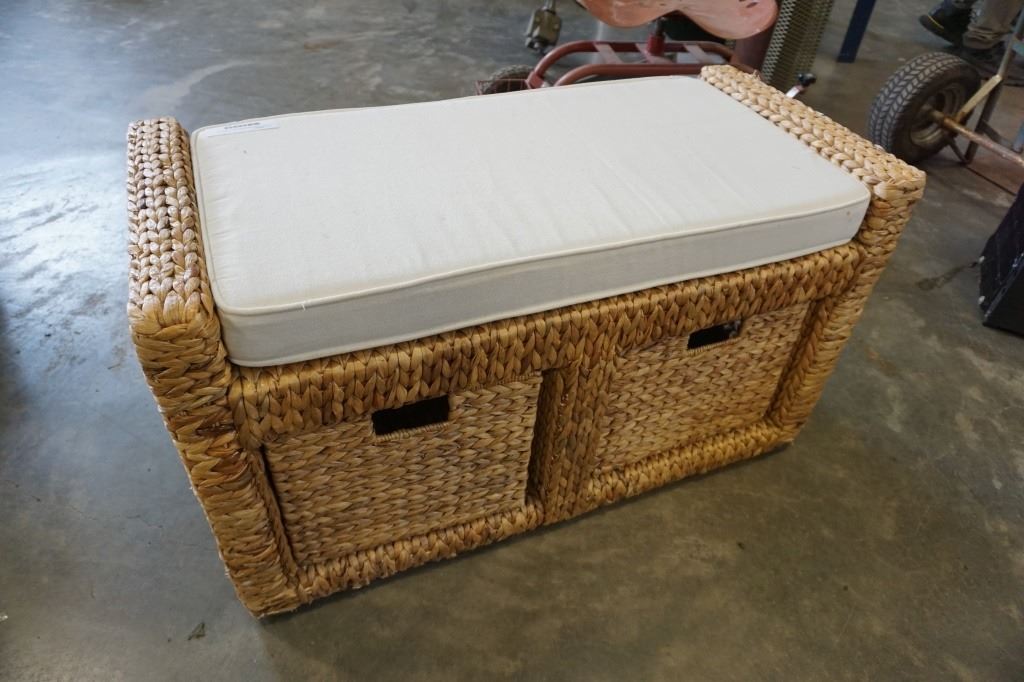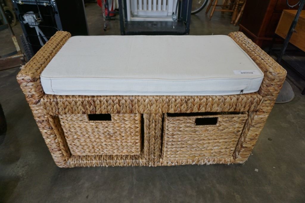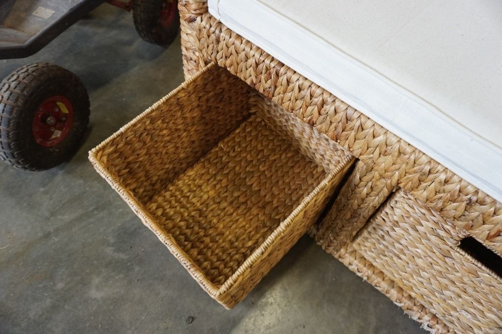 WICKER STORAGE BENCH WITH 2 WICKER BASKET DRAWERS