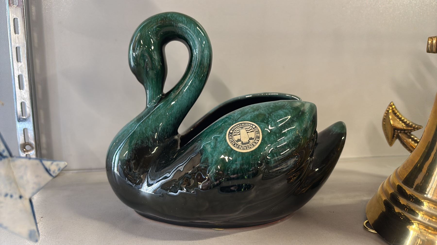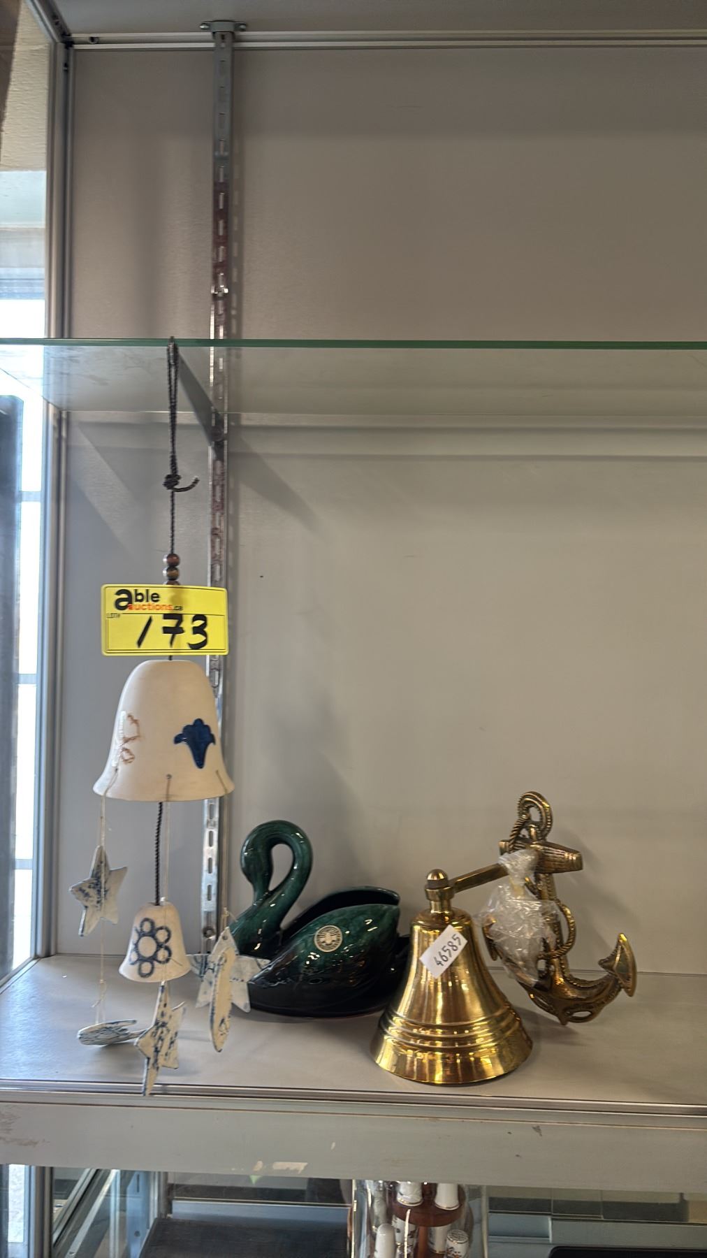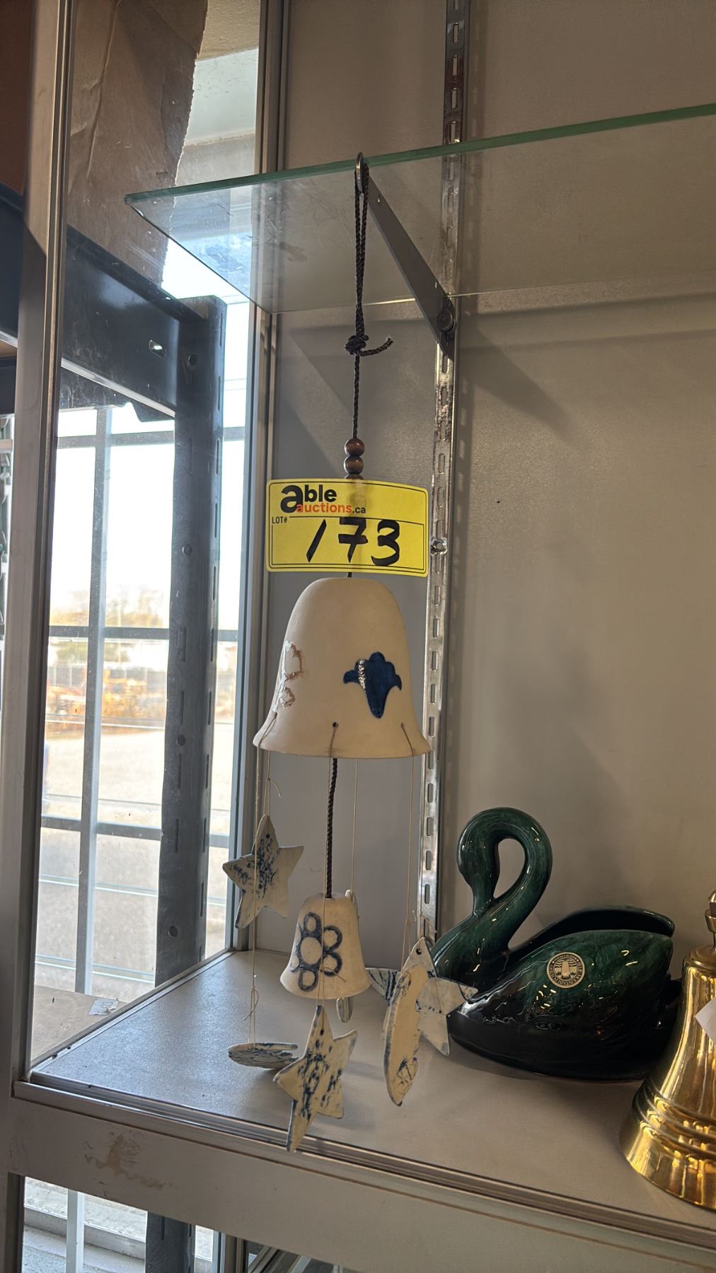 WINDCHIME, BLUE MOUNTAIN POTTERY DECORATIVE SWAN & A BRASS WALL MOUNTABLE BELL