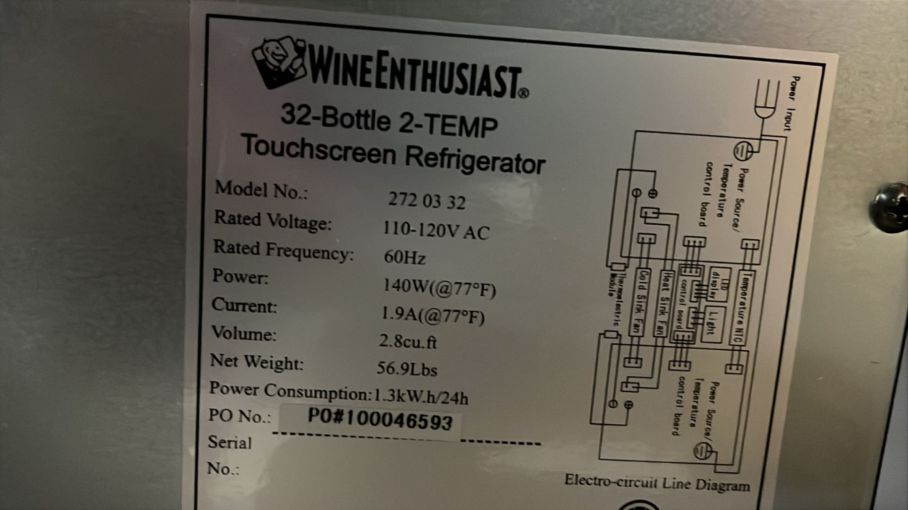 WINE ENTHUSIAST 33"T X 16"W SWING DOOR WINE FRIDGE WITH TOUCH SCREEN