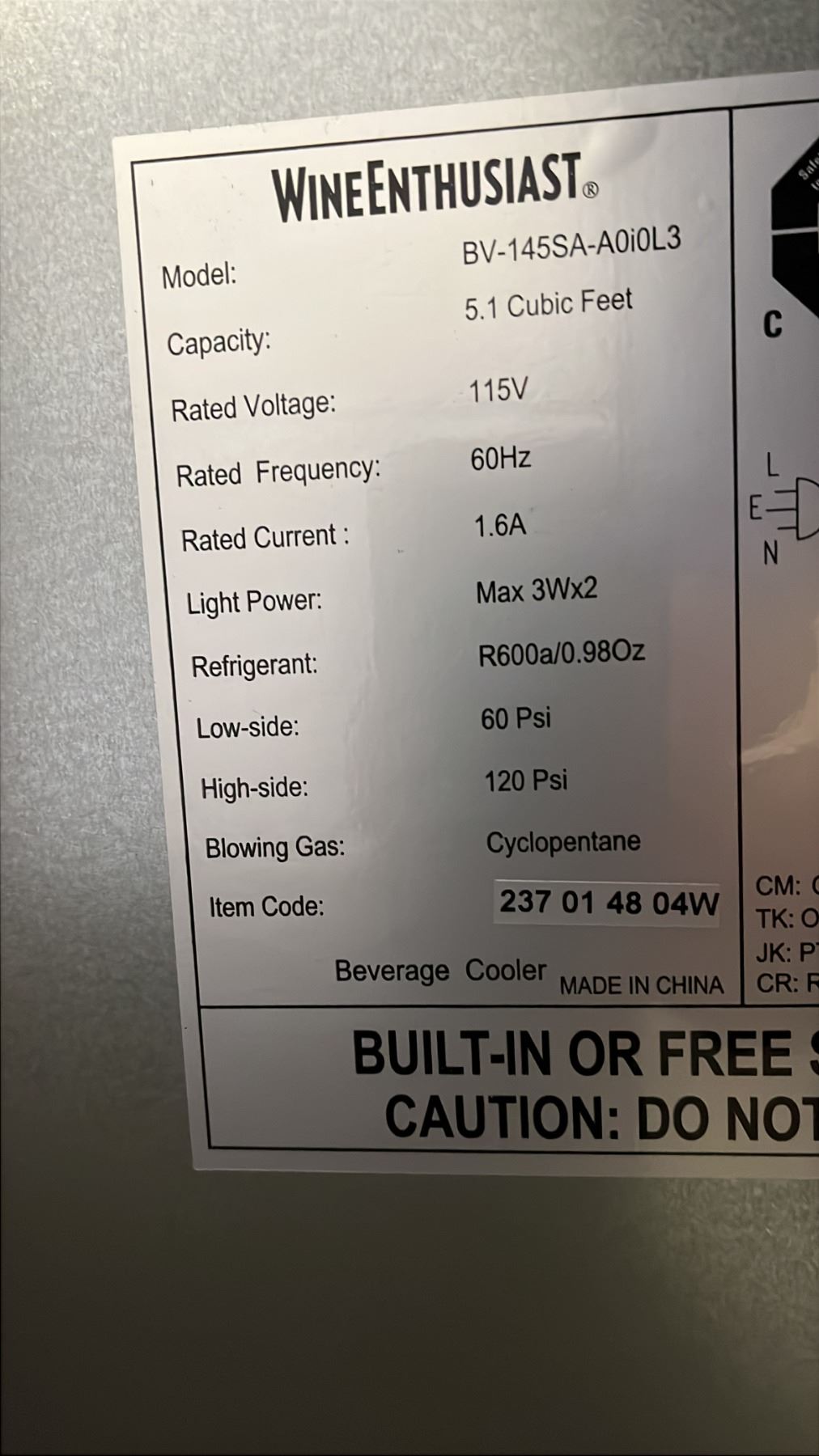 WINE ENTHUSIAST 5.1 CU. FT. WINE & BEVERAGE COOLER