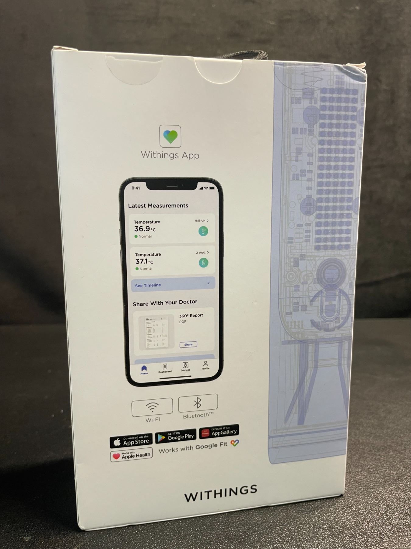 - Data from every measurement and health advice appears in the Withings app automatically via Wi-Fi/Bluetooth