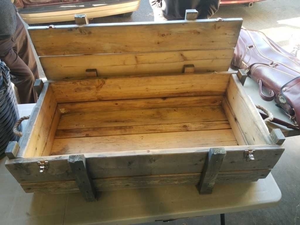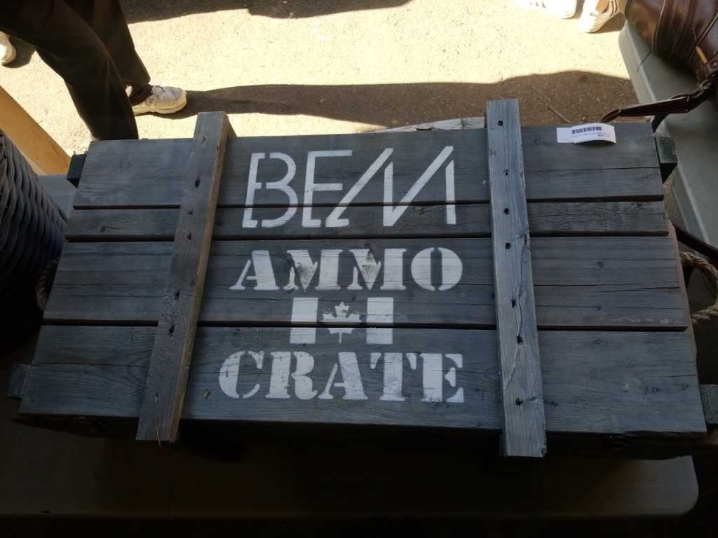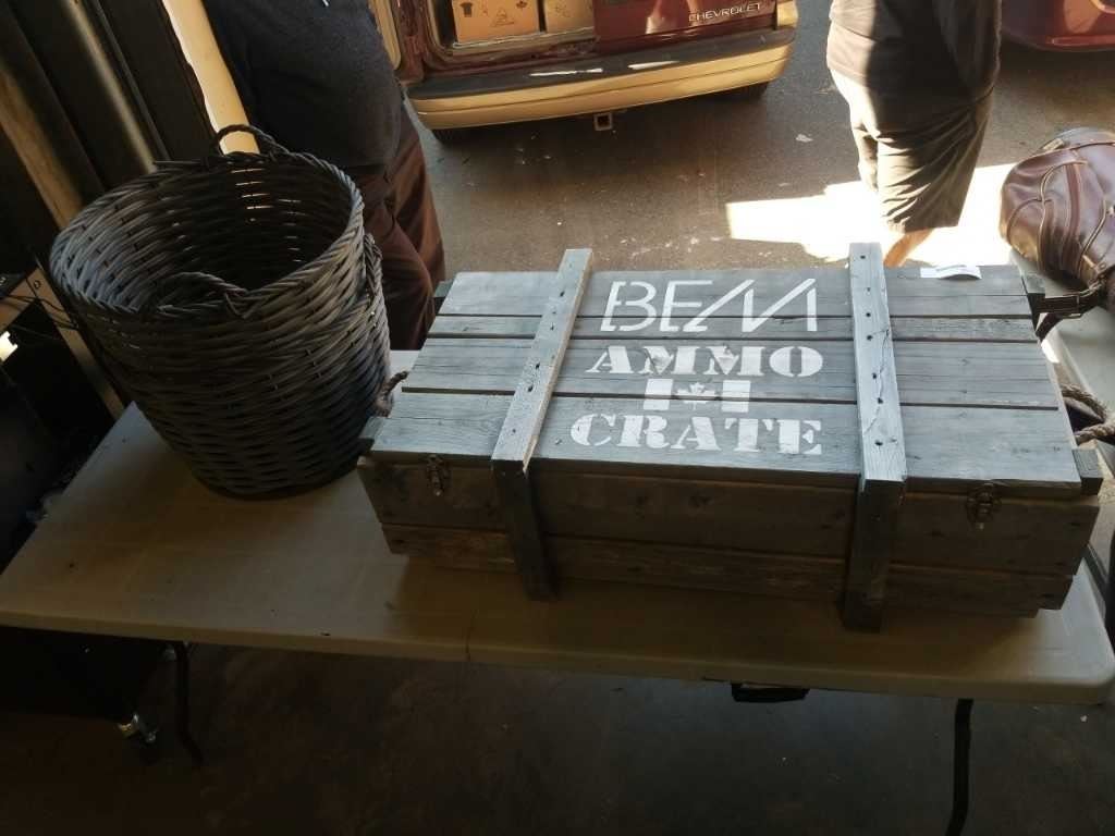 WOOD AMMO CRATE AND 2 CARBOY BASKETS