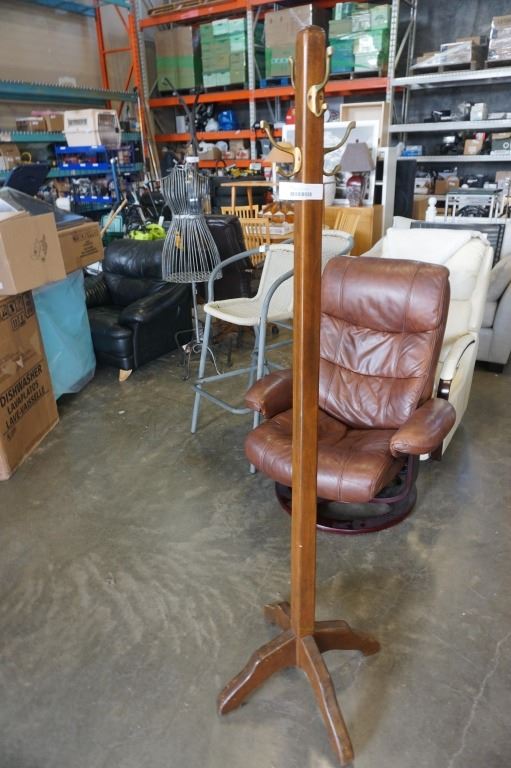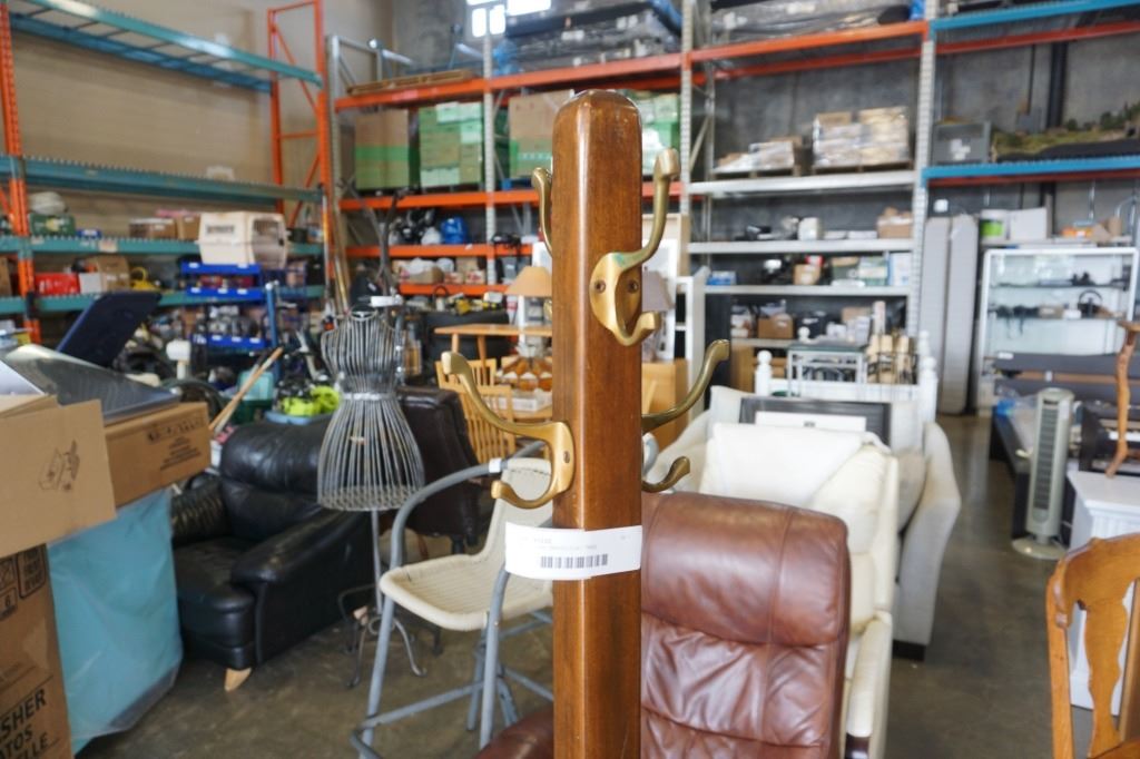 WOOD AND BRASS COAT TREE