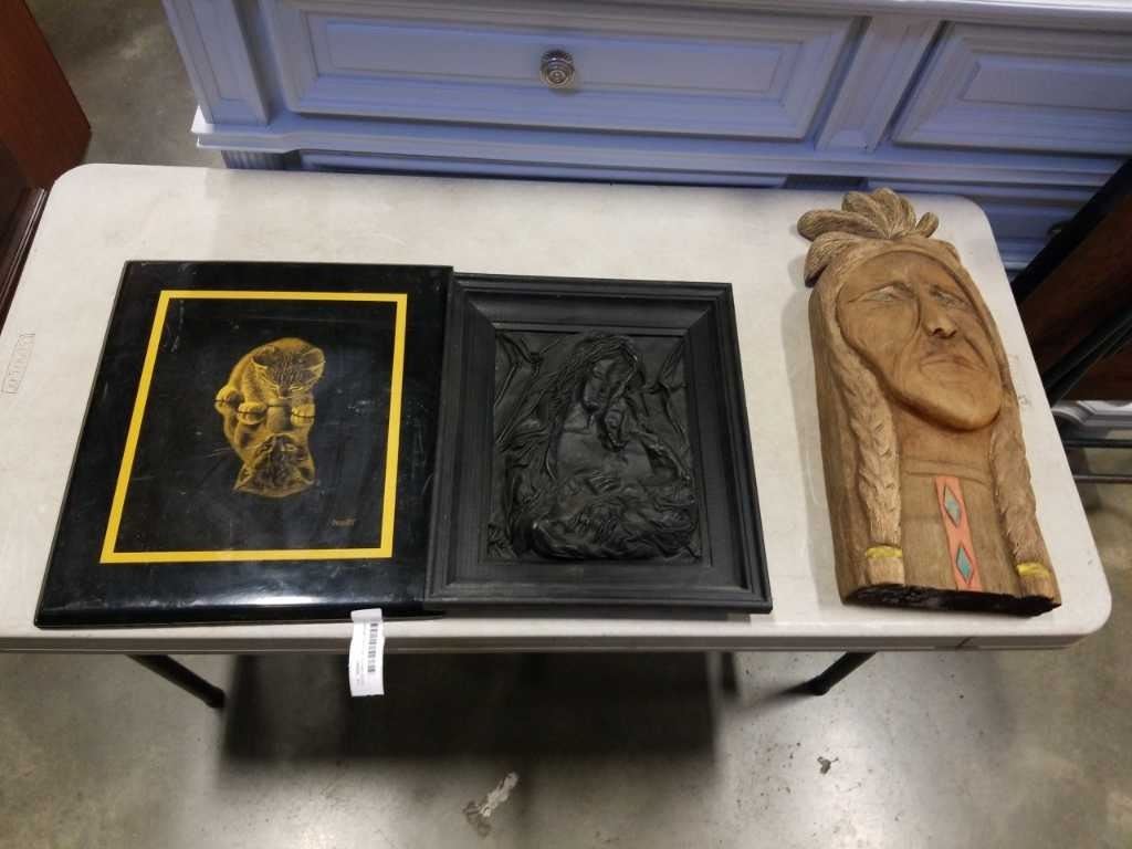 WOOD CARVING, RELIGIOUS ART AND CAT PRINT