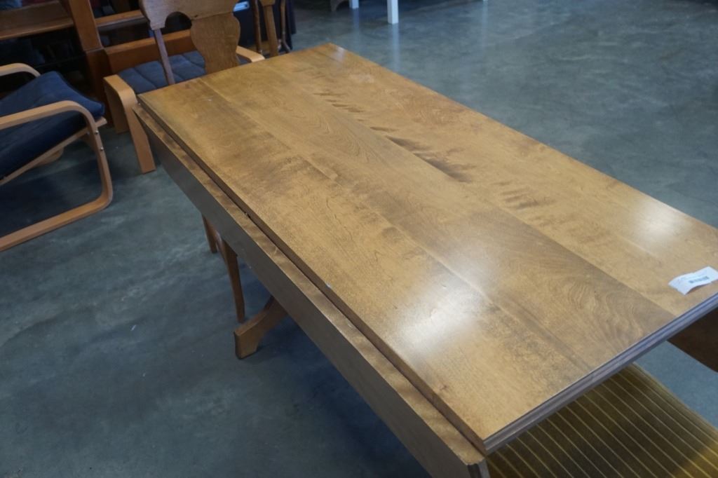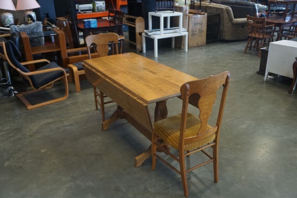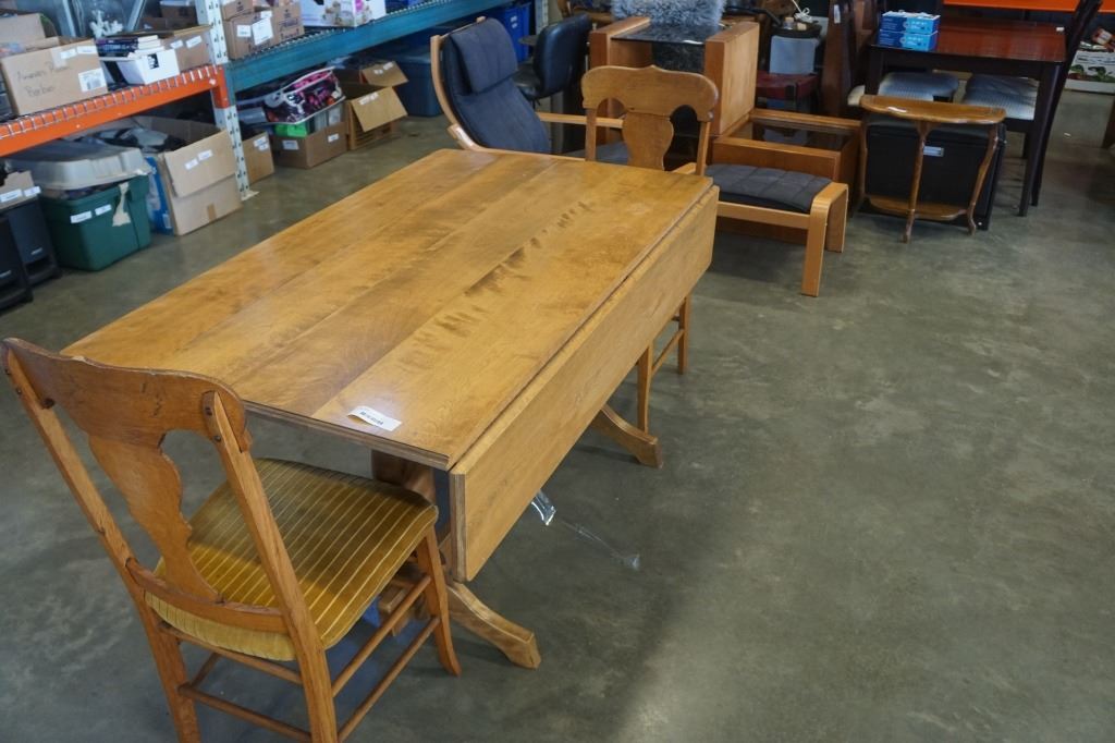 WOOD DROPLEAF DINING TABLE WITH 2 VINTAGE CHAIRS