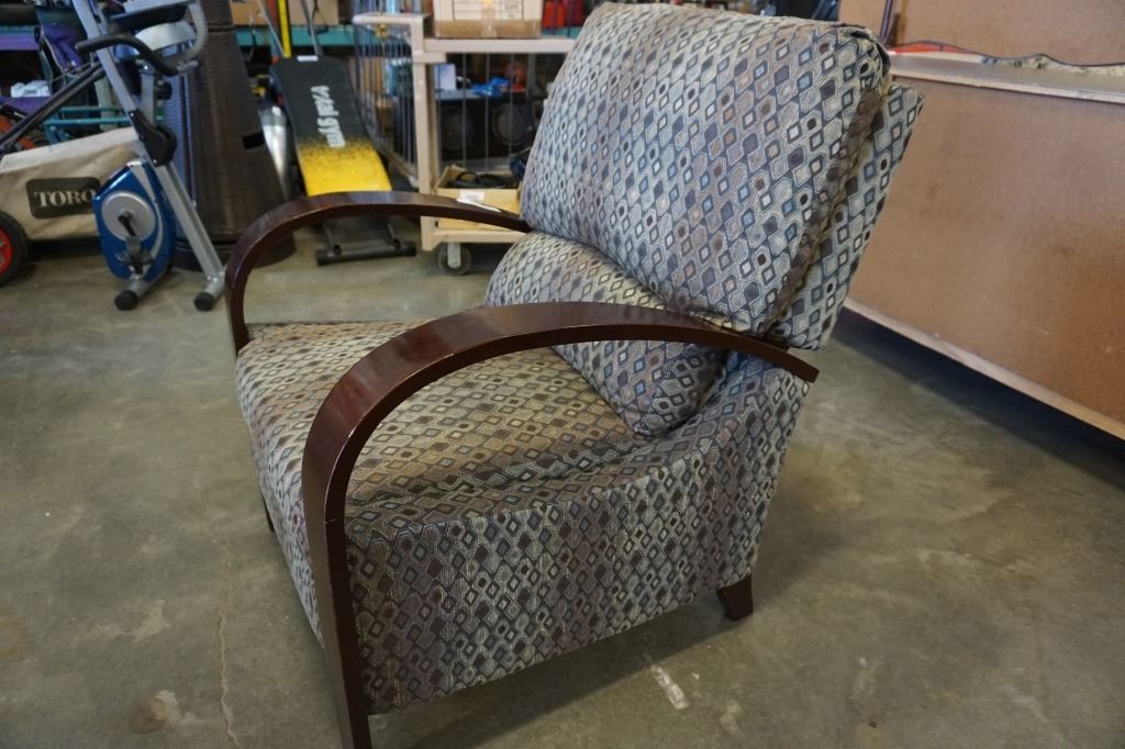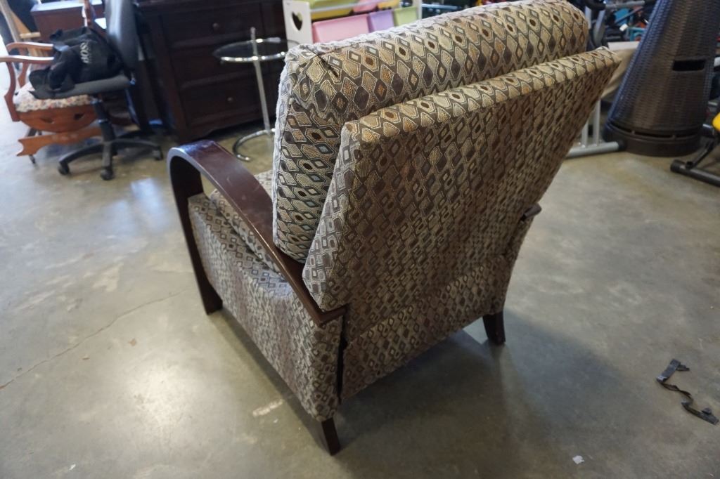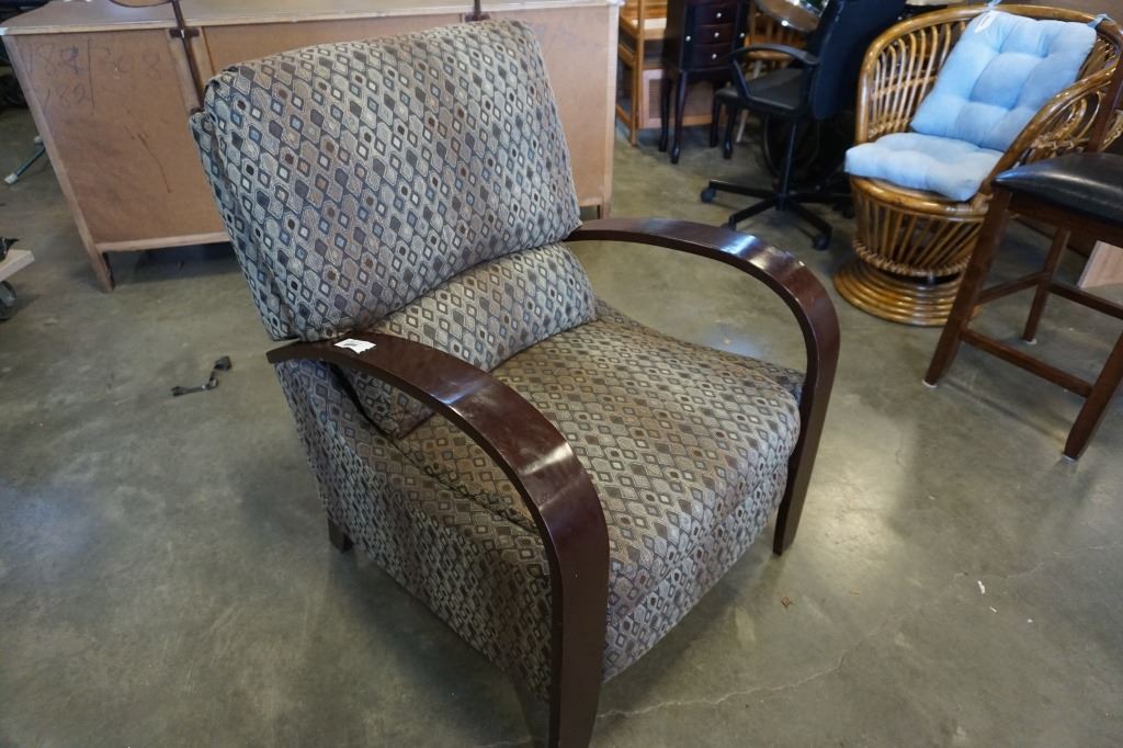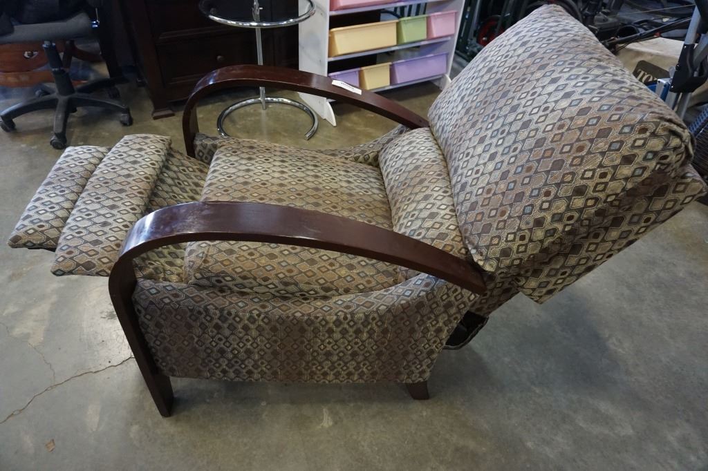 WOOD FRAMED RECLINING ARM CHAIR