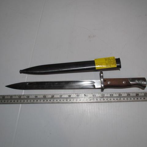 WOOD HANDLED BAYONET WITH SHEATH, 705 5, NICE SHAPE