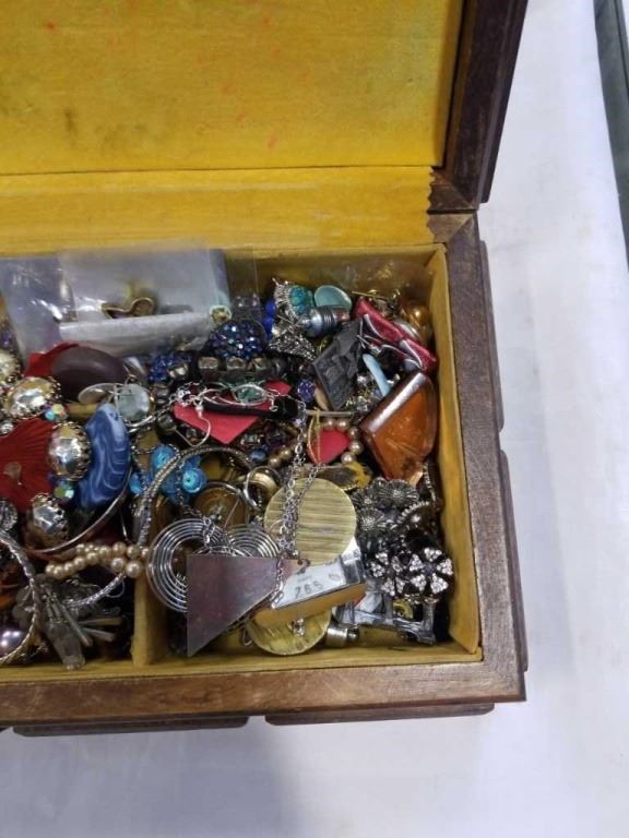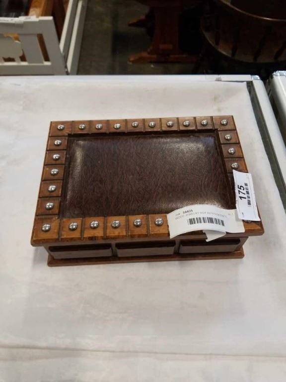 WOOD JEWELRY BOX WITH CONTENTS