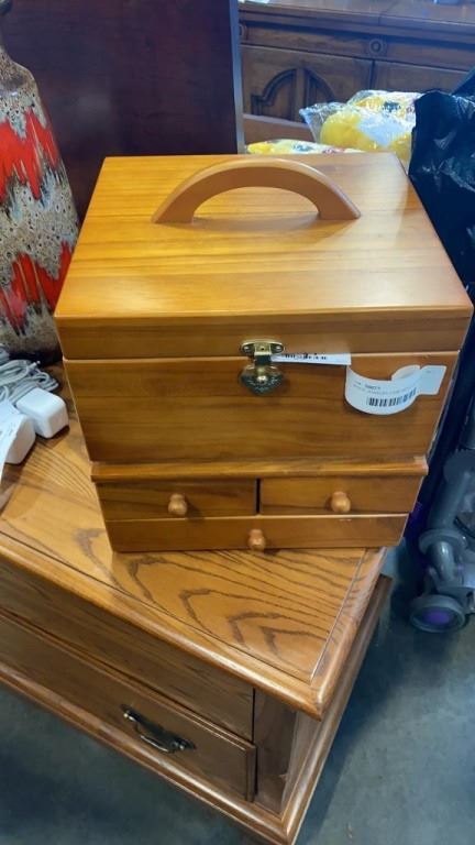 WOOD JEWELRY CASE WITH FOLD OUT MIRROR