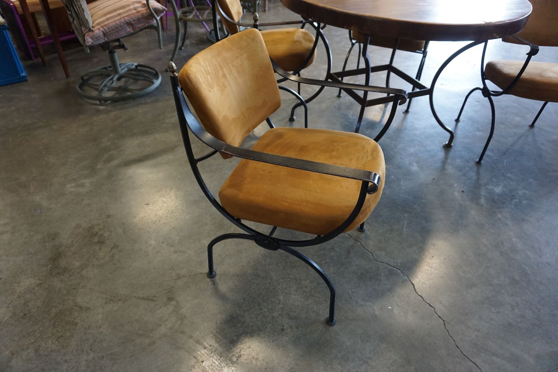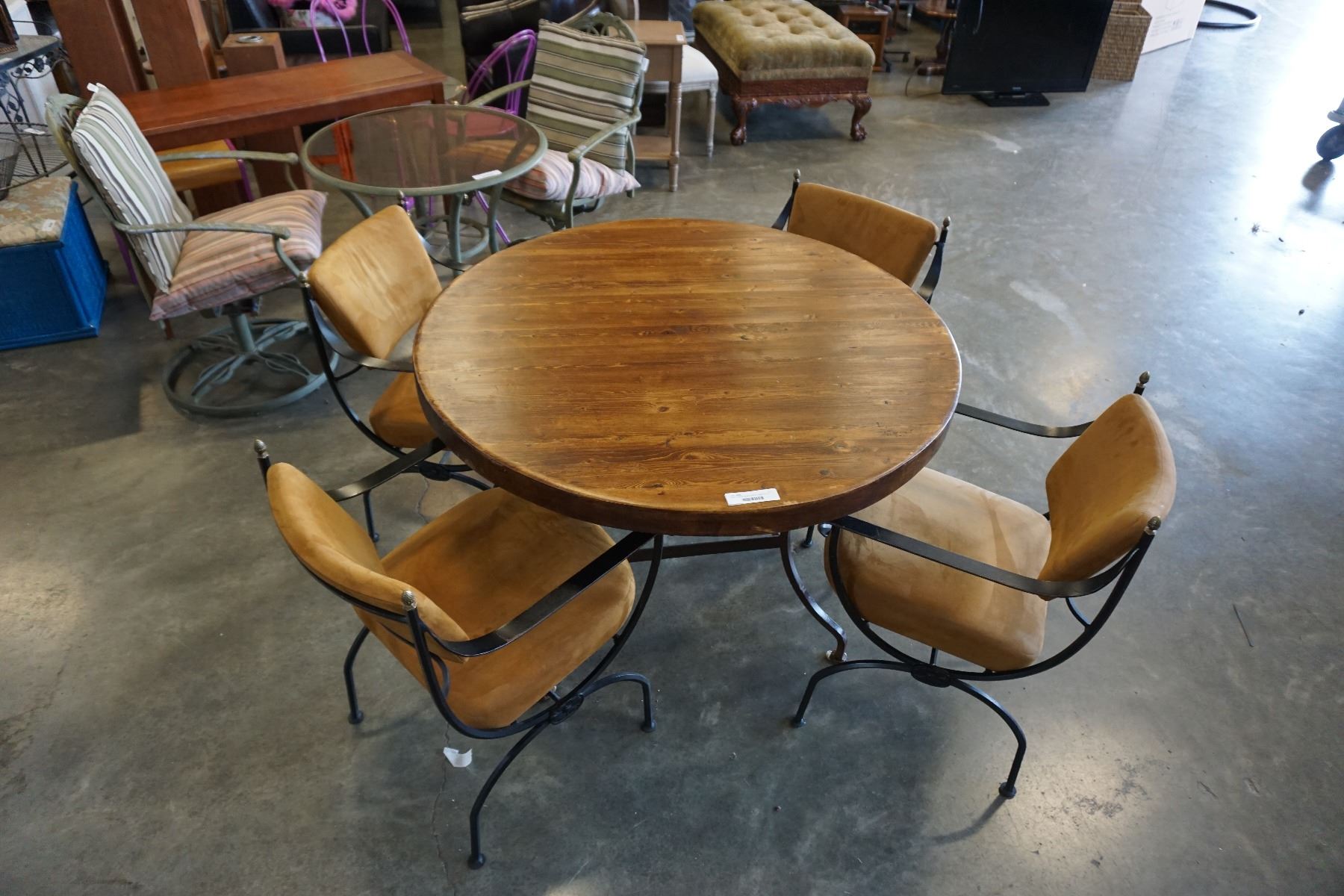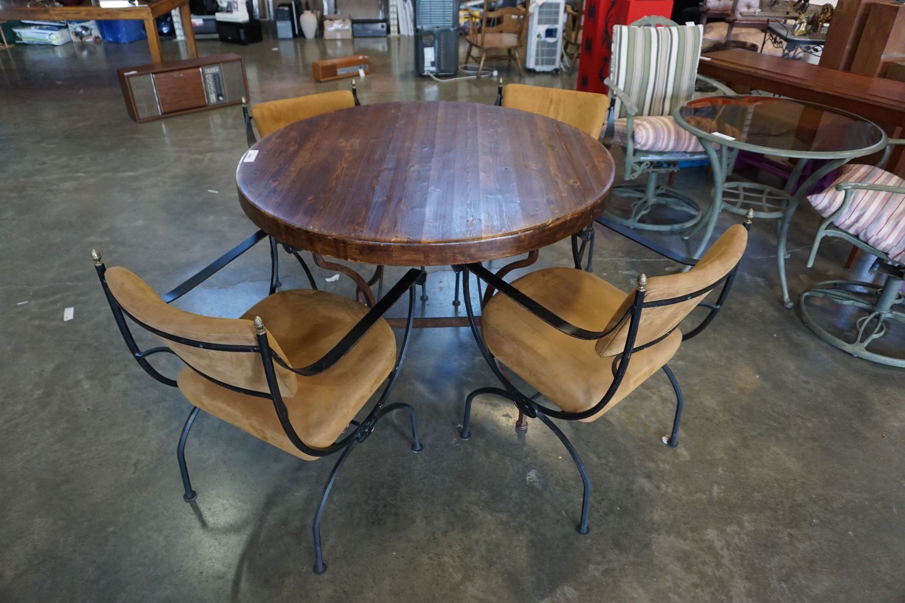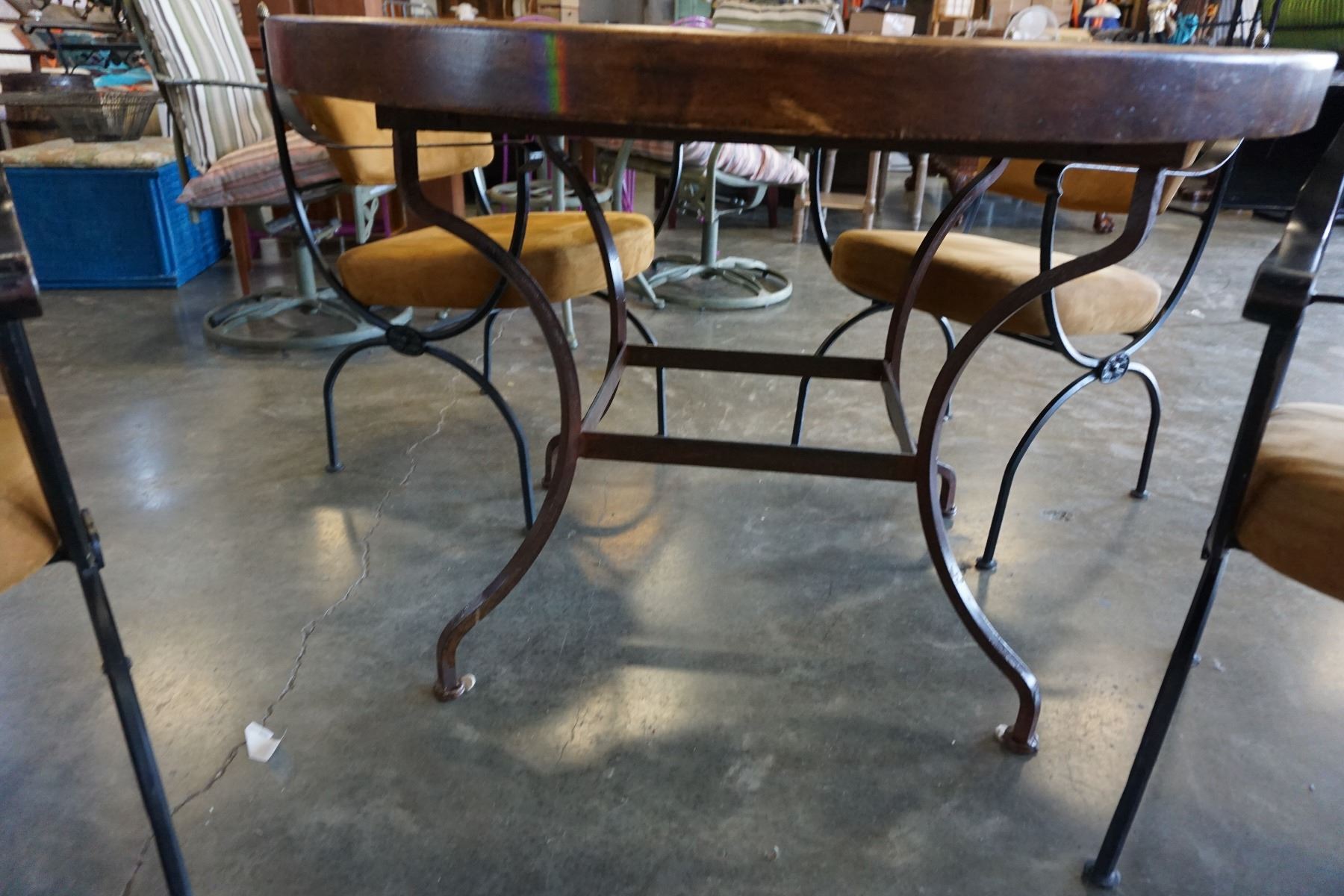 WOOD METAL BASE DINING TABLE WITH 4 METAL FRAME CHAIRS