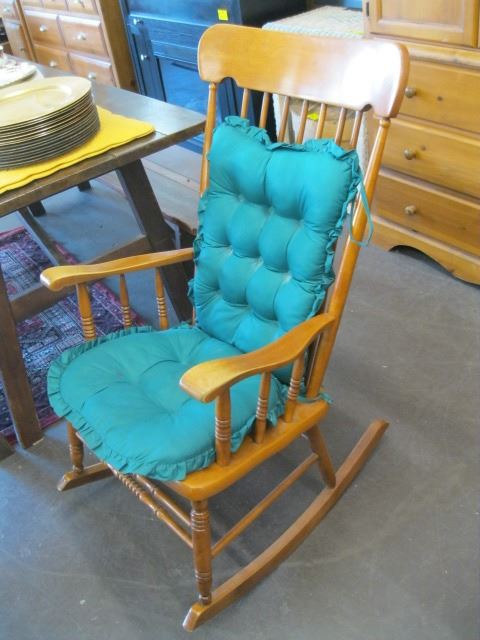 WOOD ROCKING CHAIR WITH GREEN CUSHION