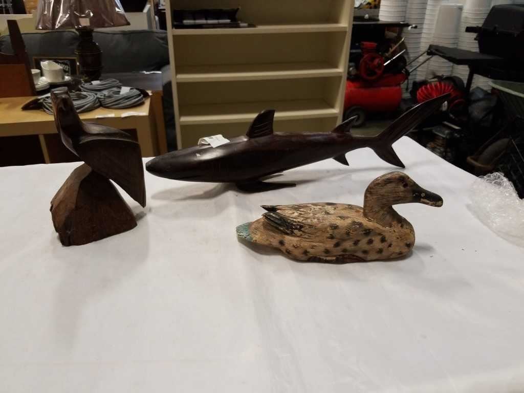 WOOD SHARK, DUCK AND BIRD CARVINGS
