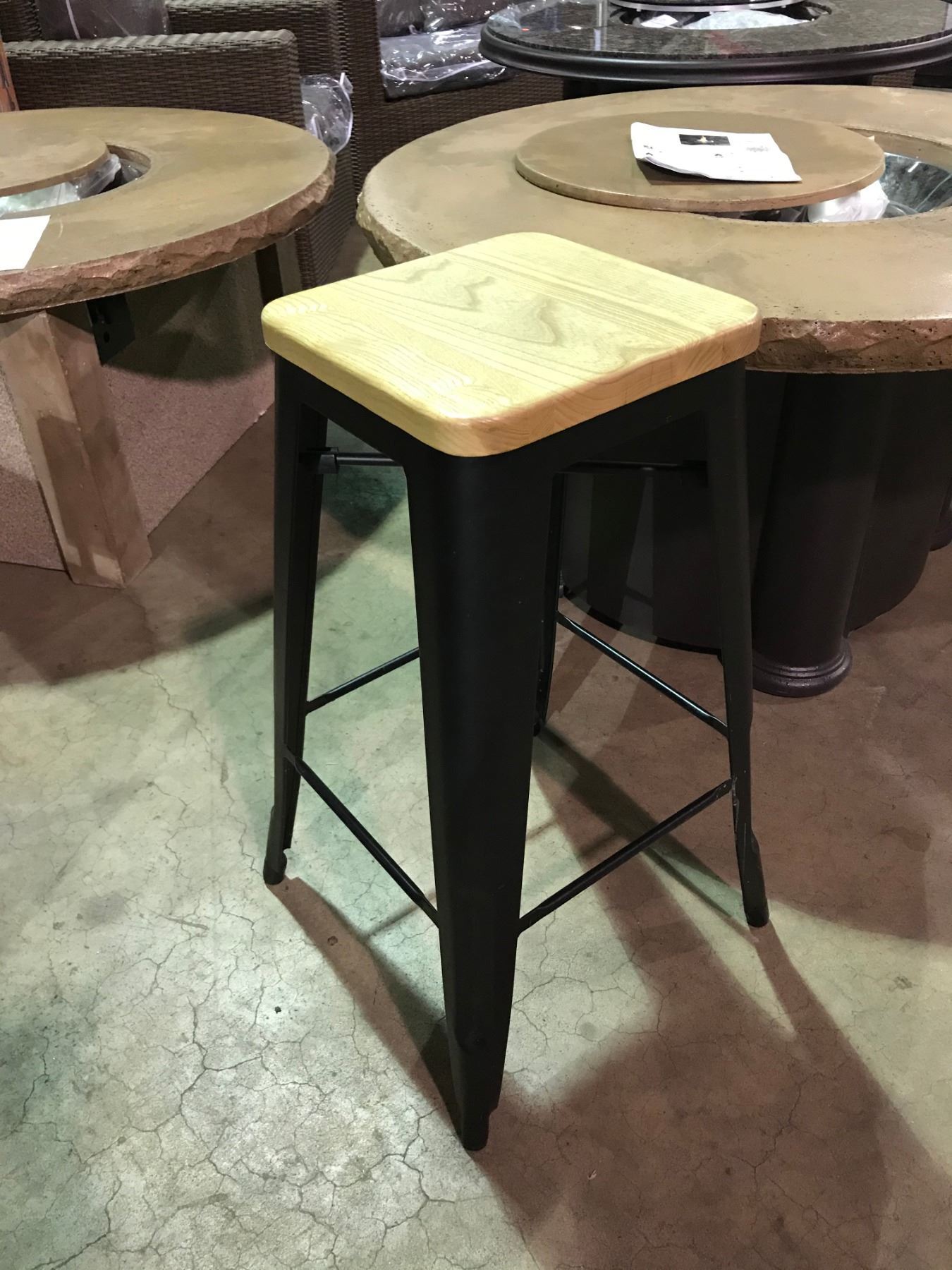 WOOD TOP BLACK METAL BAR HEIGHT RESTAURANT STOOL