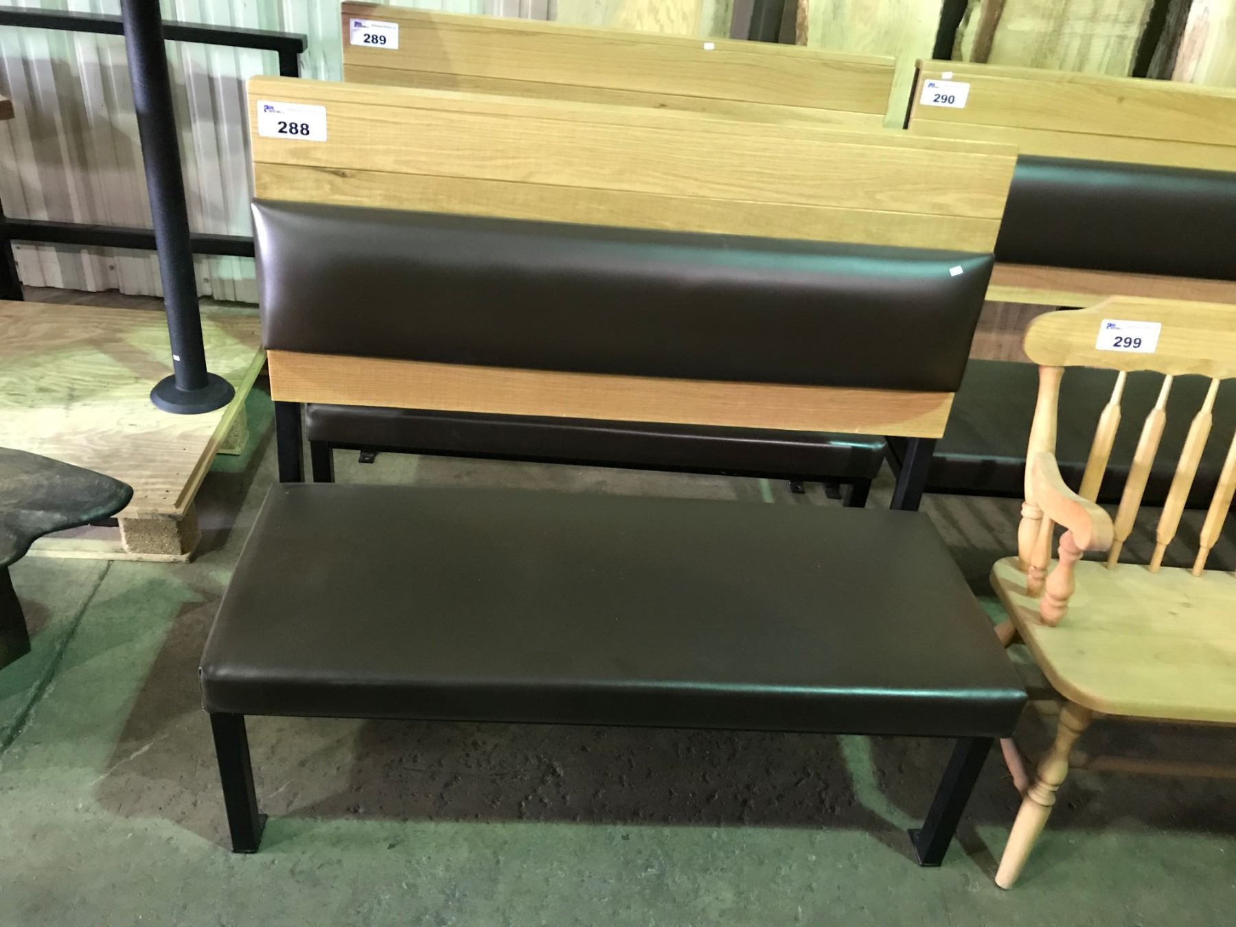WOOD TOP BLACK METAL / LEATHER 2 PERSON RESTAURANT BENCH