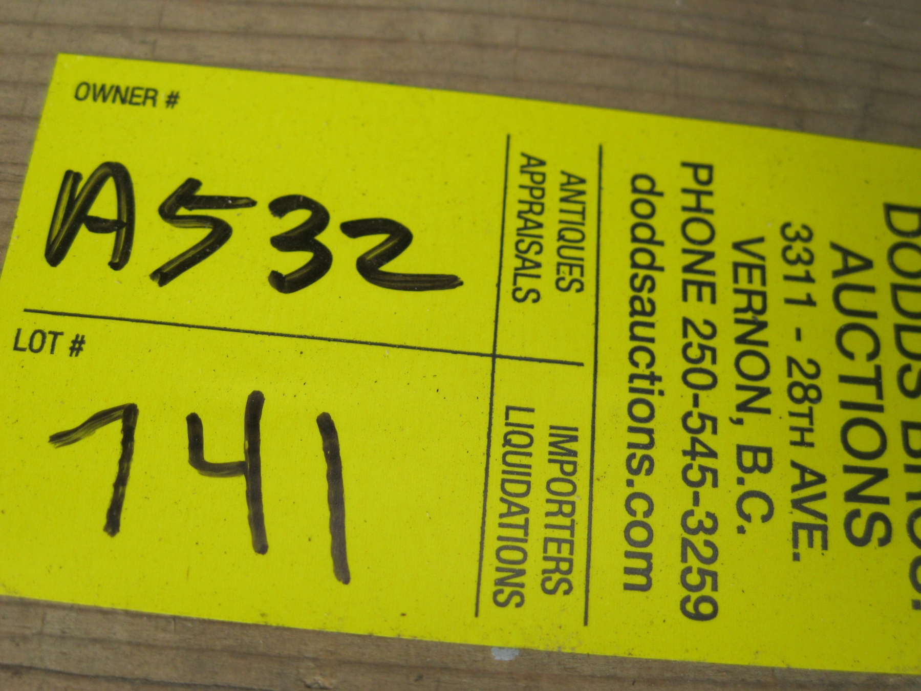 Invoices are available after the auction closes through your Live Auction World Account. If paying by e-transfer, send to: bob@doddsauction.com (auto-deposited)