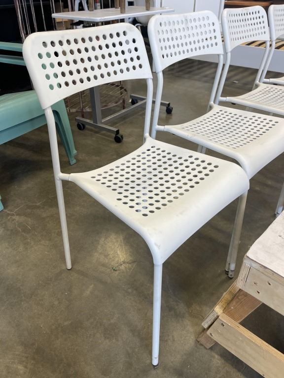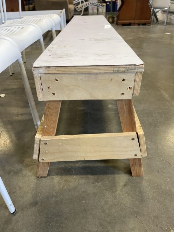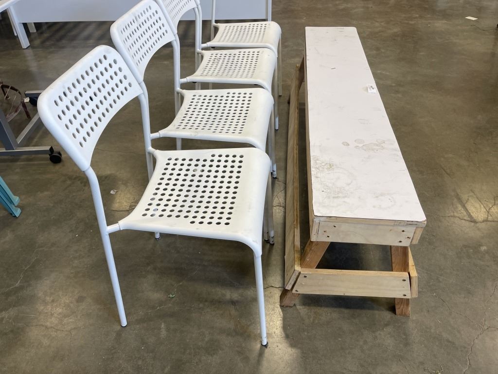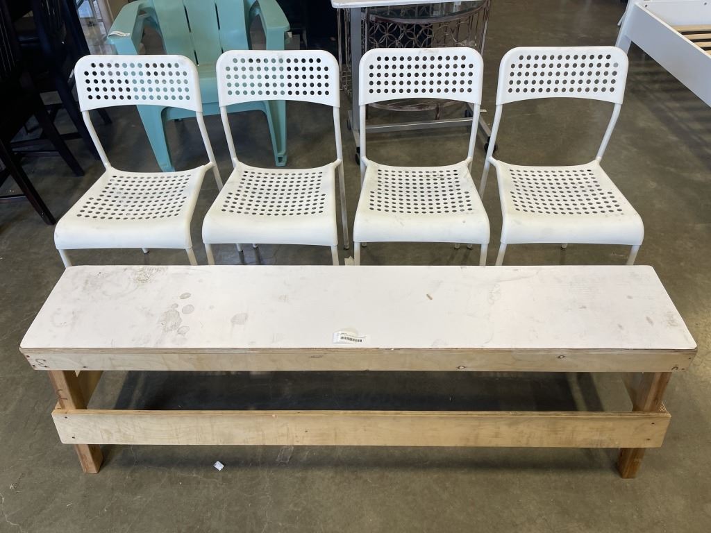 WOODEN BENCH AND SET OF 4 STACKING CHAIRS