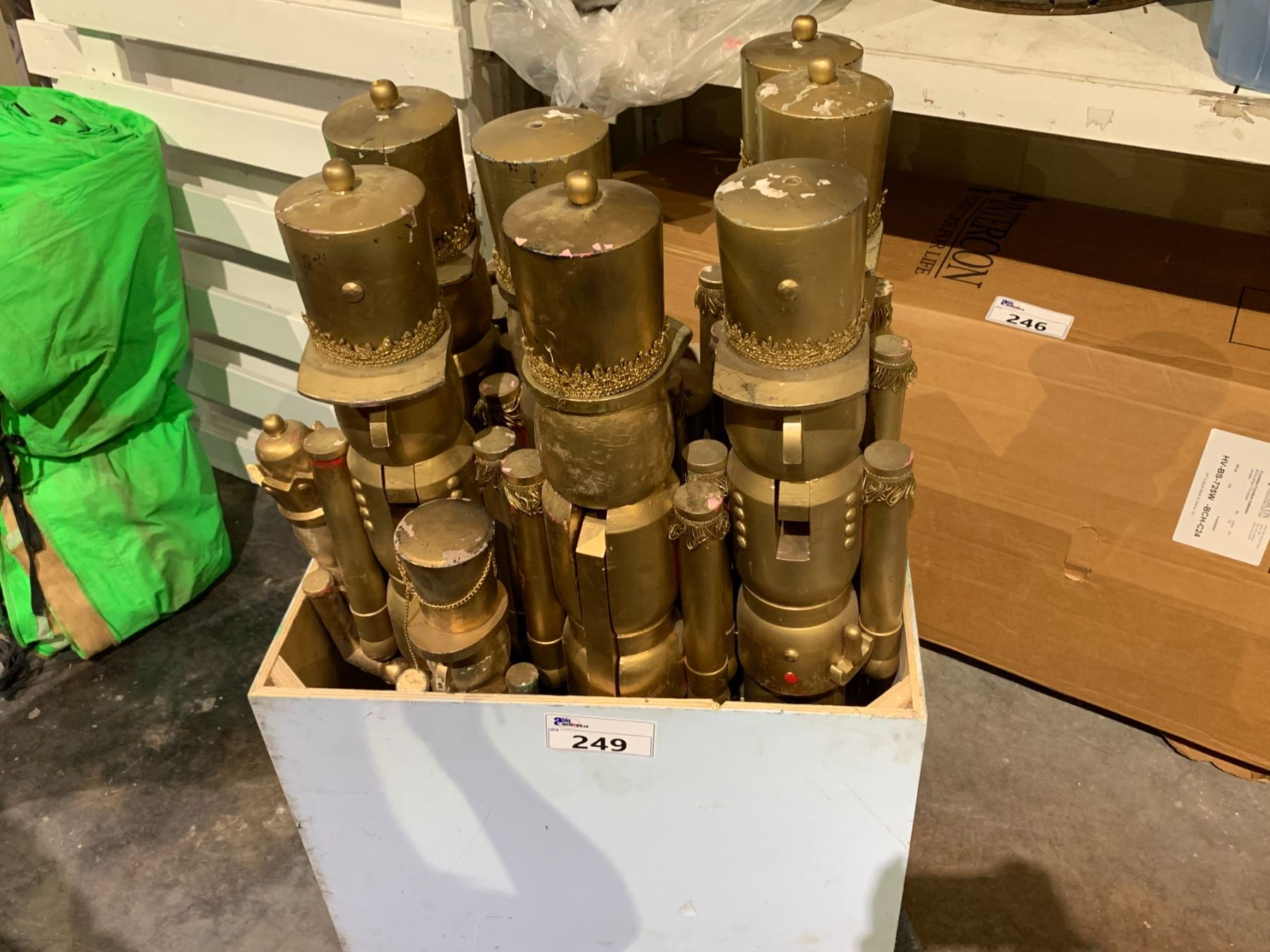 WOODEN BOX FULL OF GOLD NUTCRACKER FIGURES