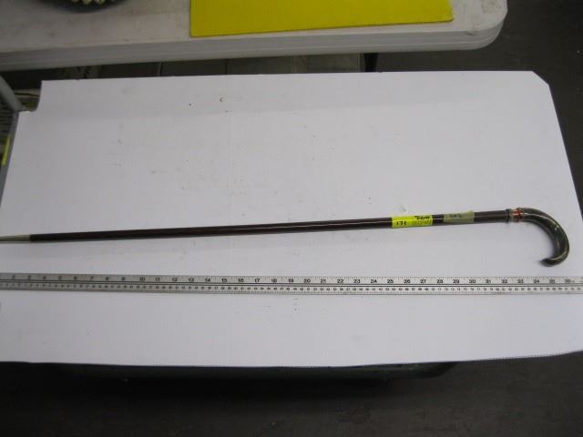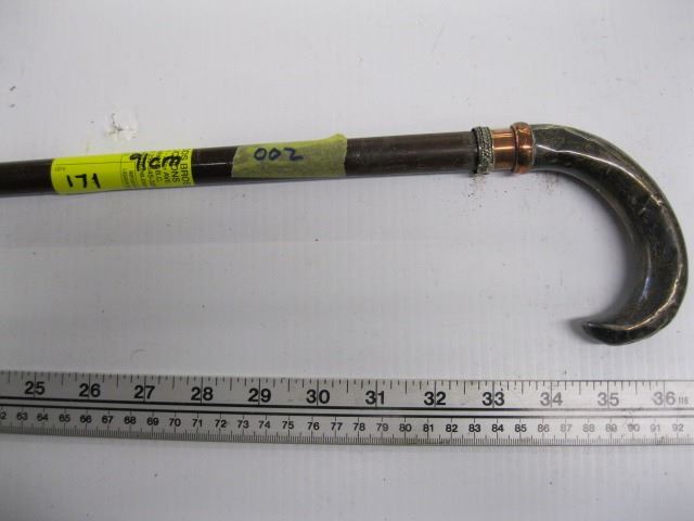 WOODEN CANE WITH COPPER & SILVER HANDLE