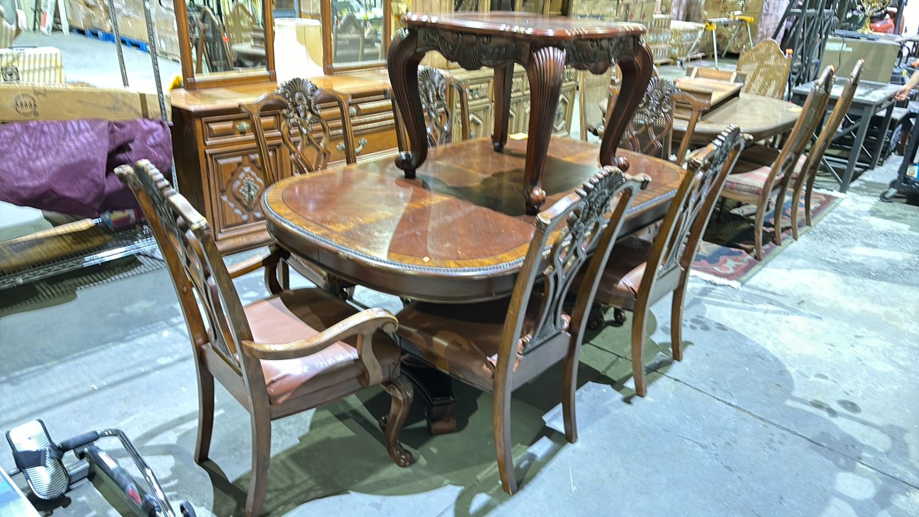 WOODEN DINING TABLE WITH 6 DINING CHAIRS, AND WOODEN COFFEE TABLE