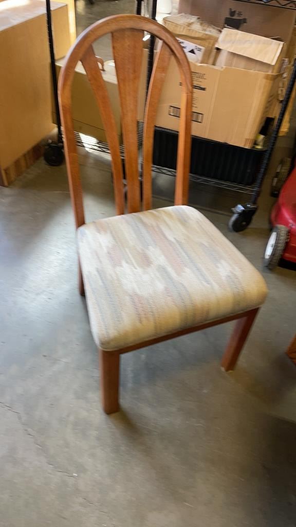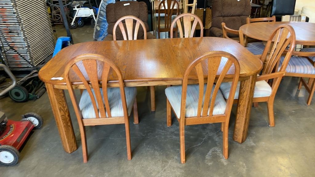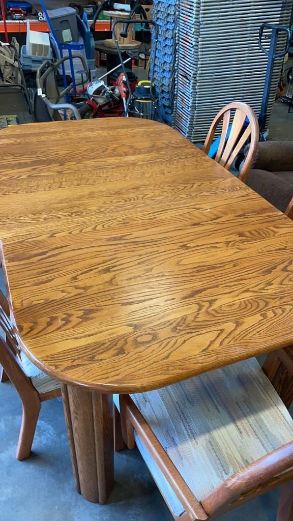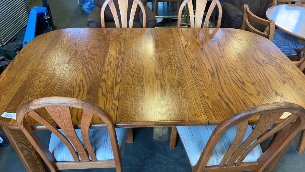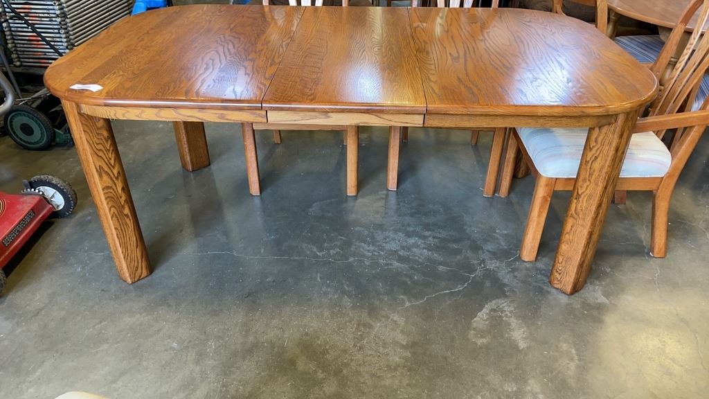 WOODEN DINING TABLE WITH LEAF AND 5 CHAIRS