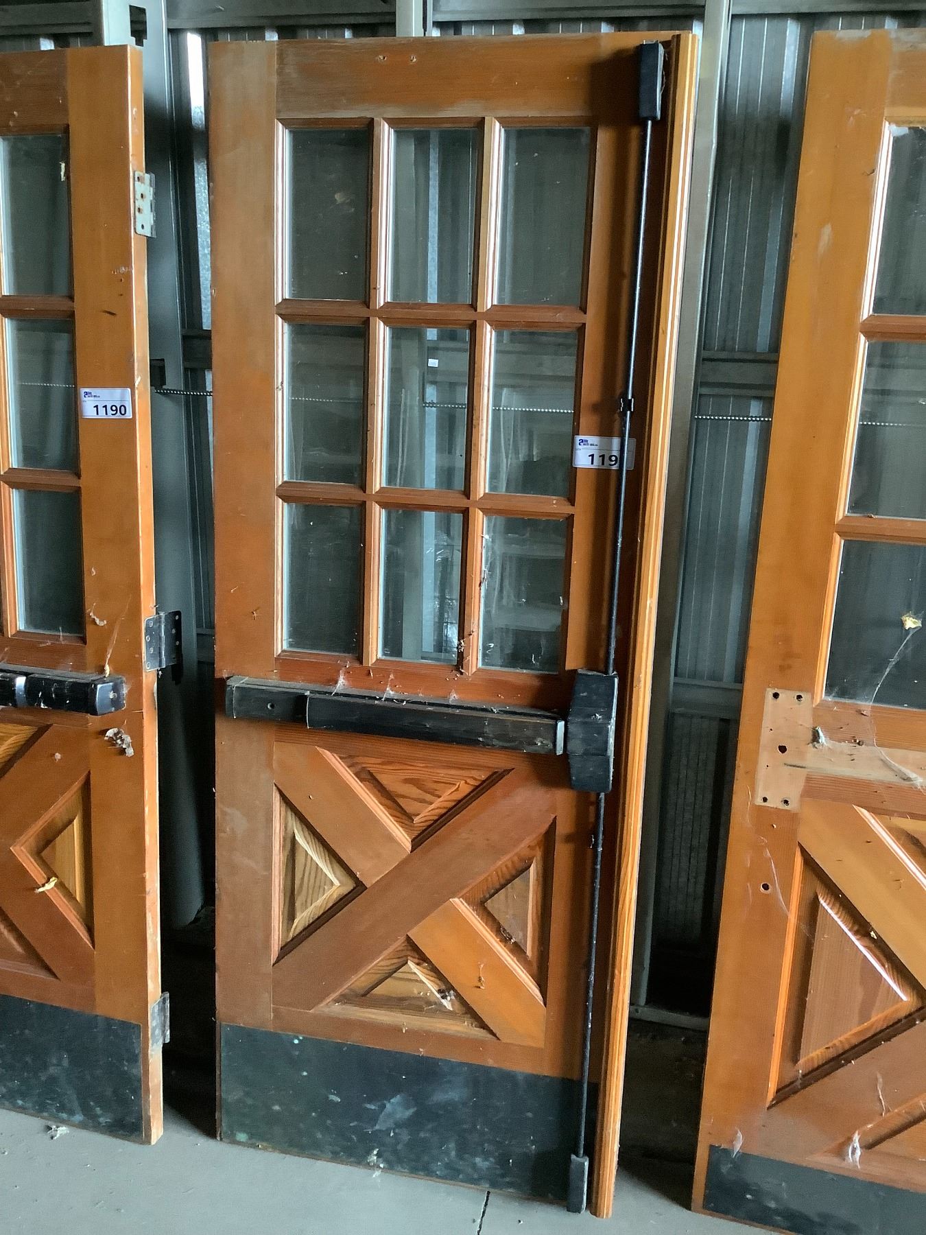 WOODEN DOOR WITH WINDOWS 80.5" X 31" WITH PUSH OPENER