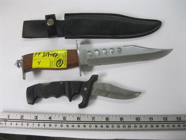 WOODEN HANDLED KNIFE & SHEATH, BLACK HANDLED FOLDING KNIFE