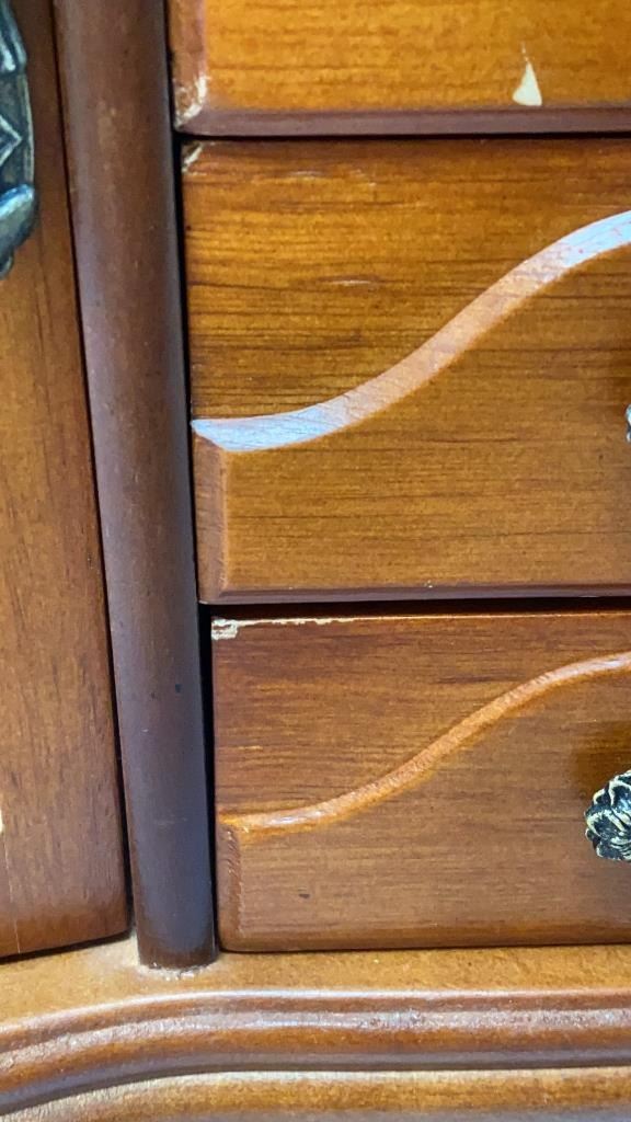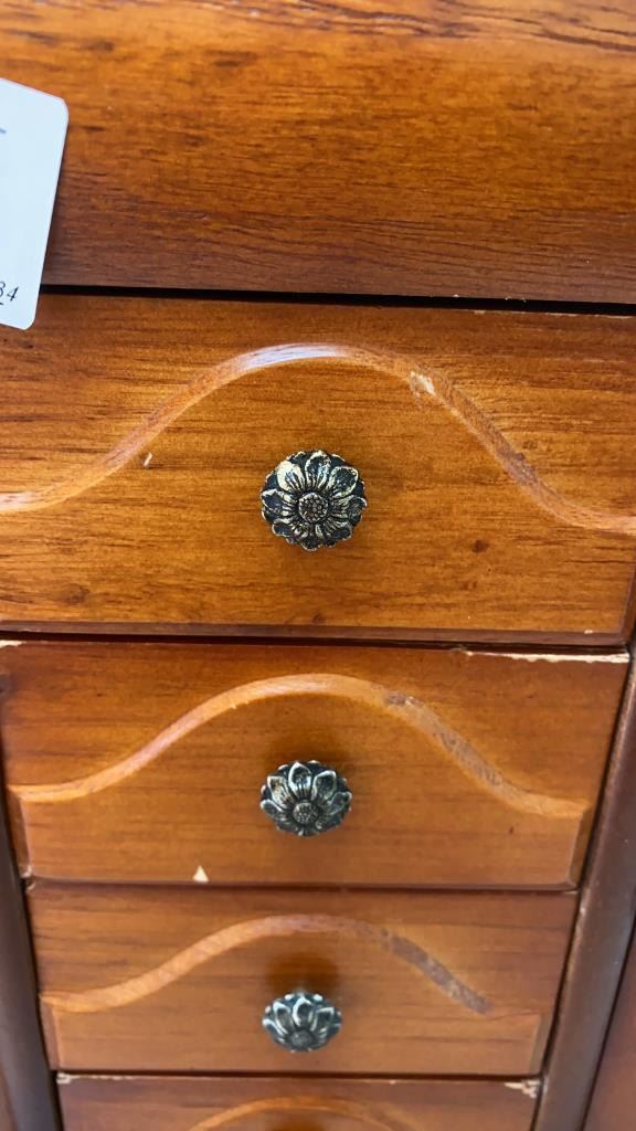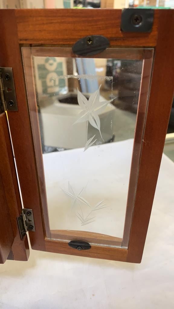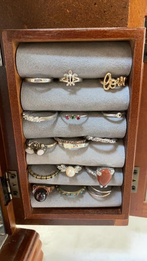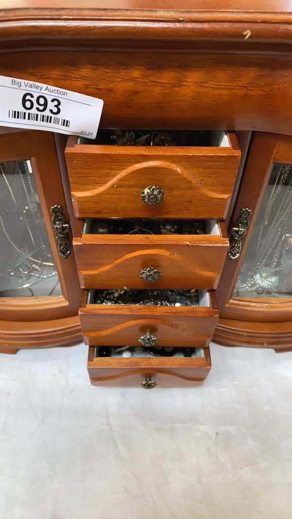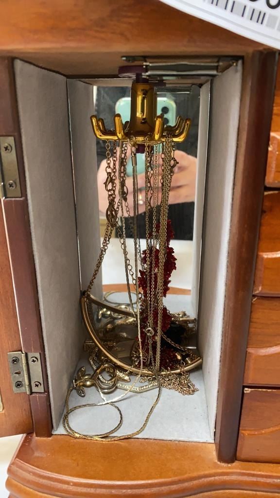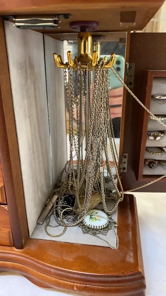 WOODEN JEWELLERY CASE W/ CONTENTS