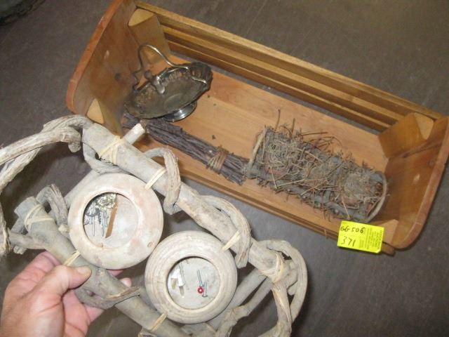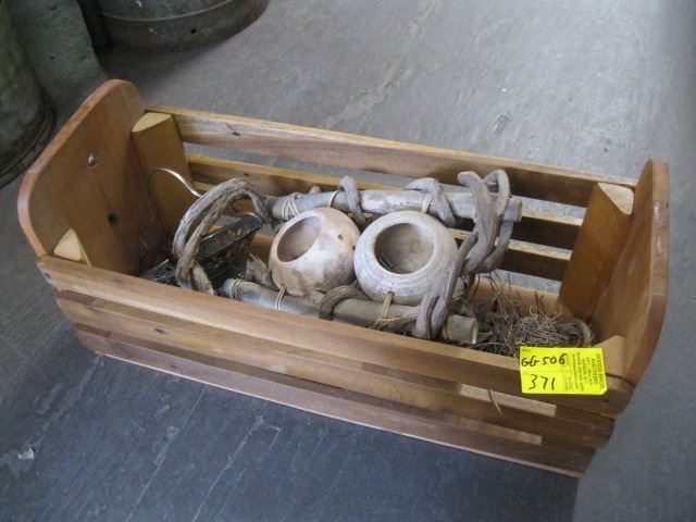 WOODEN TRAY WITH ASST. PLANTERS, ETC.
