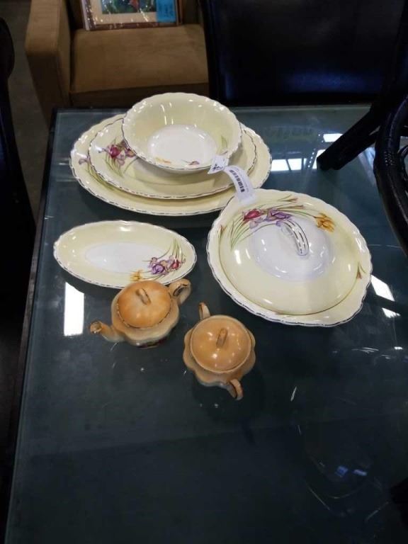WOODS IVORY WARE PLATTERS AND LIDDED BOWL AND 2 MADE IN SLOVAKIA CHINA TEAPOT AND SUGAR BOWL
