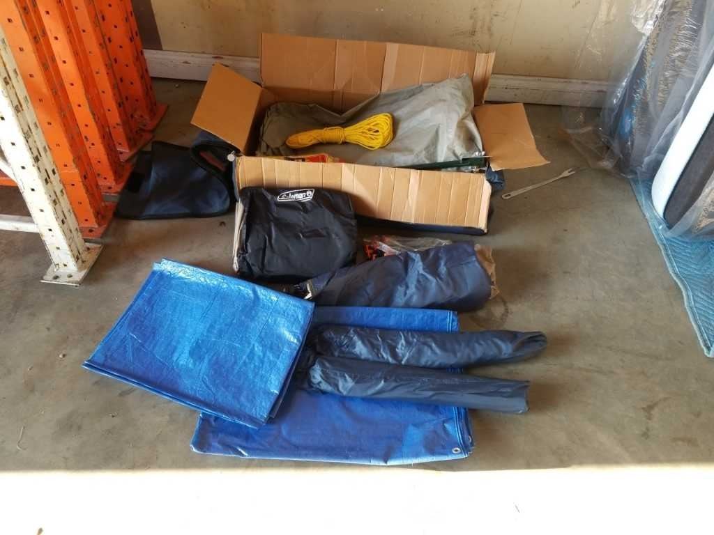 WOODS TENT, COLEMAN AIR MATTRESS AND PROPANE TREE