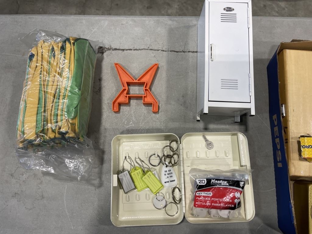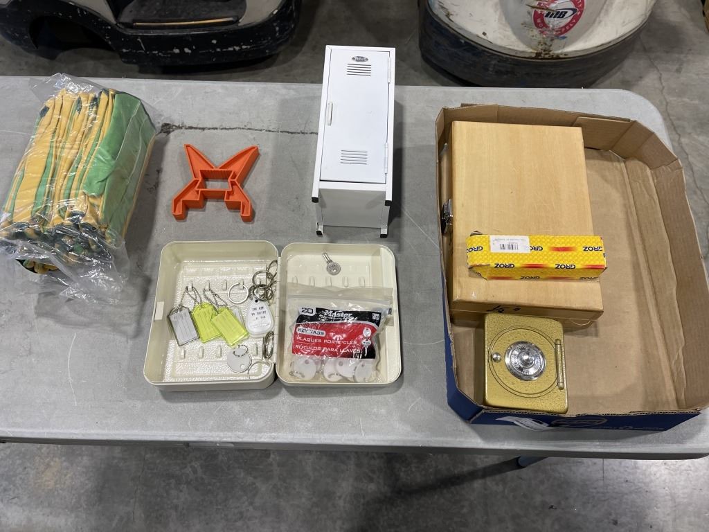 WORK GLOVES, 2 LOCK BOXES AND COMBINATION SAFE