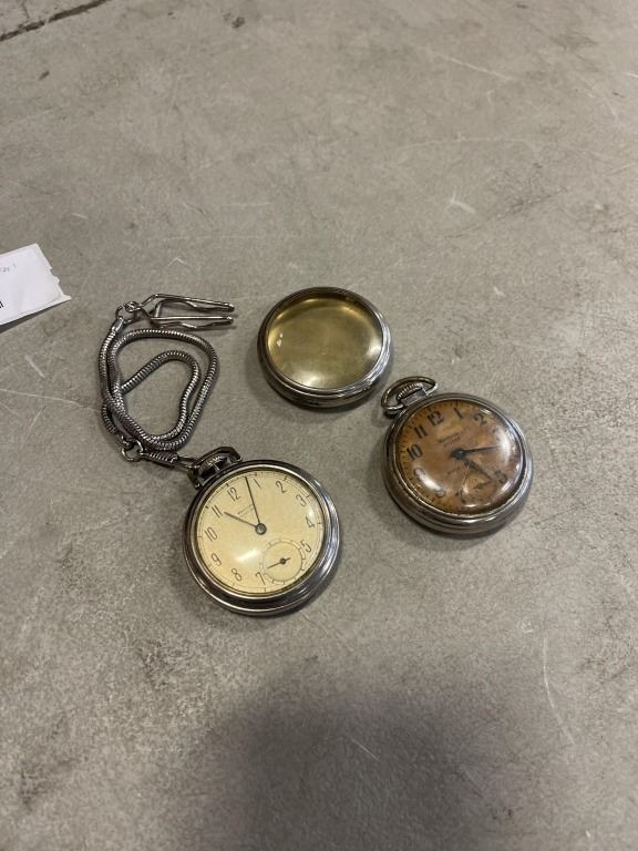 WORKING WESTCLOX POCKET WATCH WITH CHAIN, WESTCLOX VINTAGE POCKET WATCH AND POCKET WATCH CASE