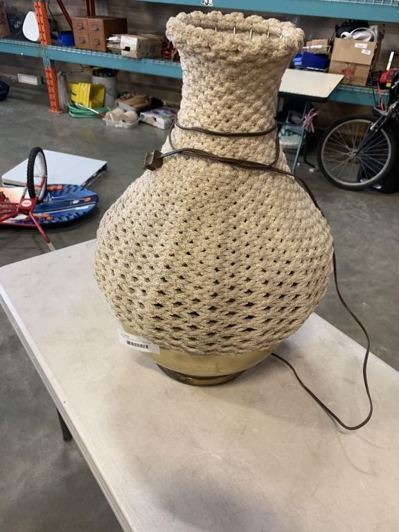 WOVEN SHADE AND BRASS TABLE LAMP