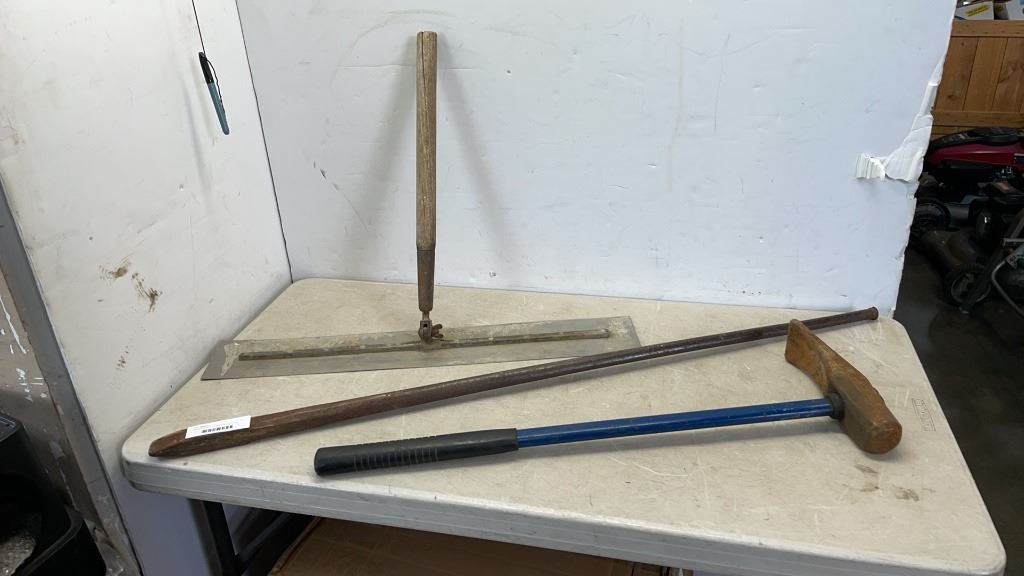 WRECKING BAR, CONCRETE FLOAT AND SLEDGE/PRY HAMMER