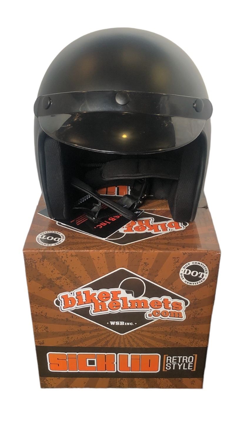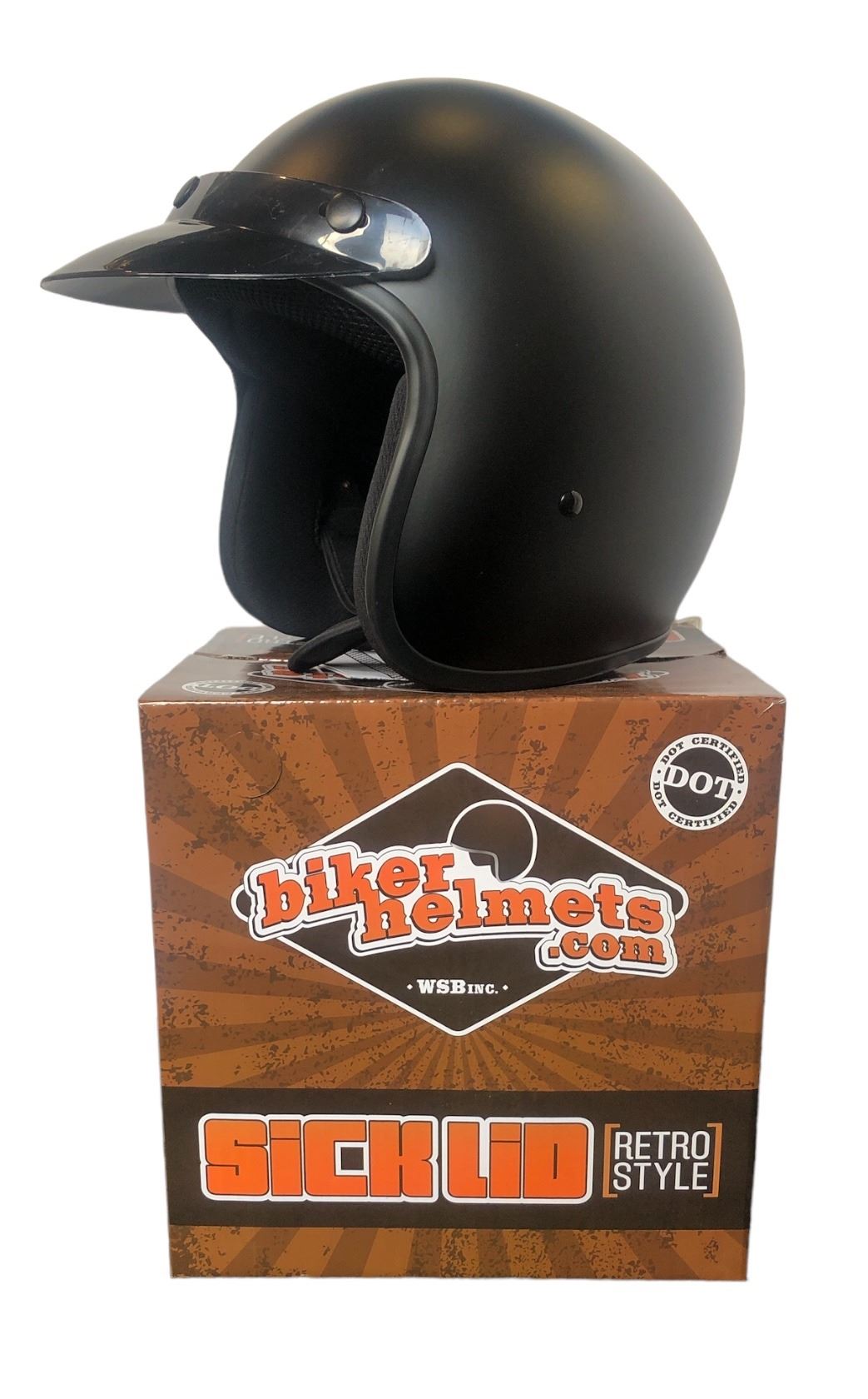 WSB Sick Lid Retro Style Open Faced Helmet w/ Snap on Visor (Matte Black) - Size : XS