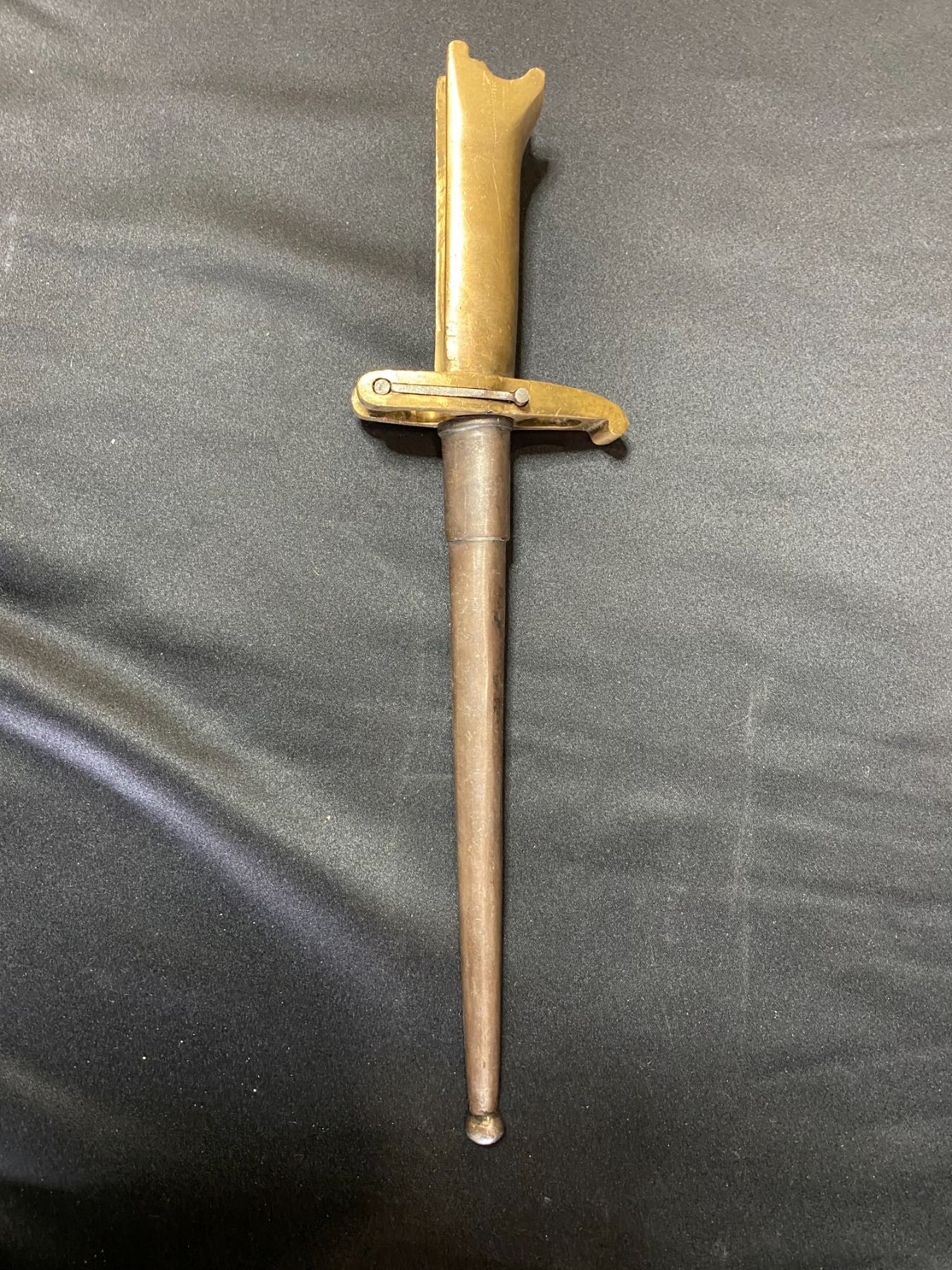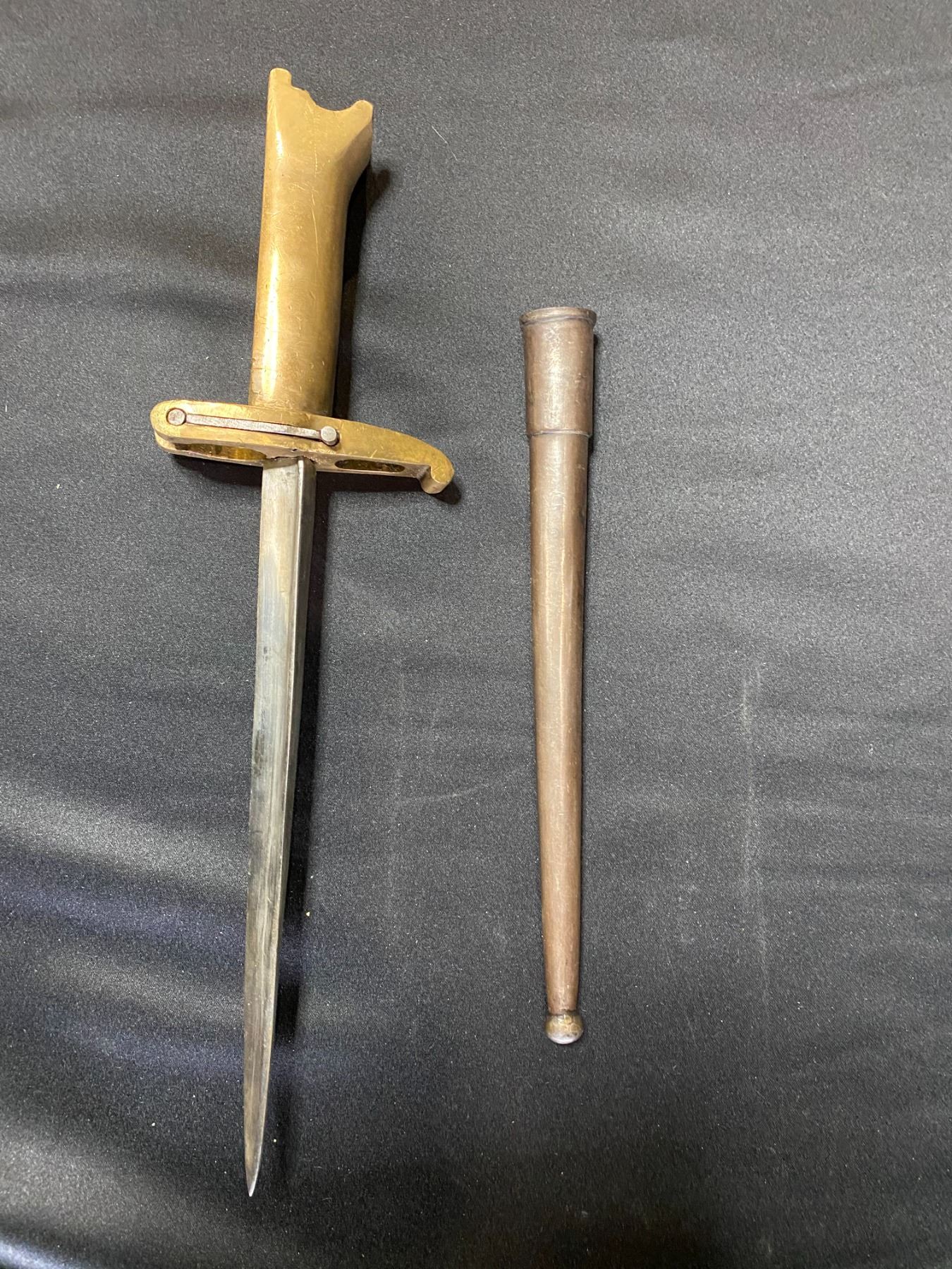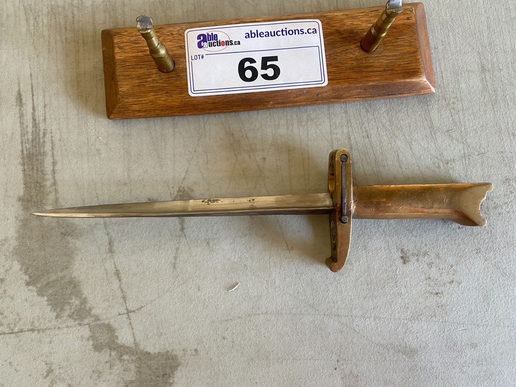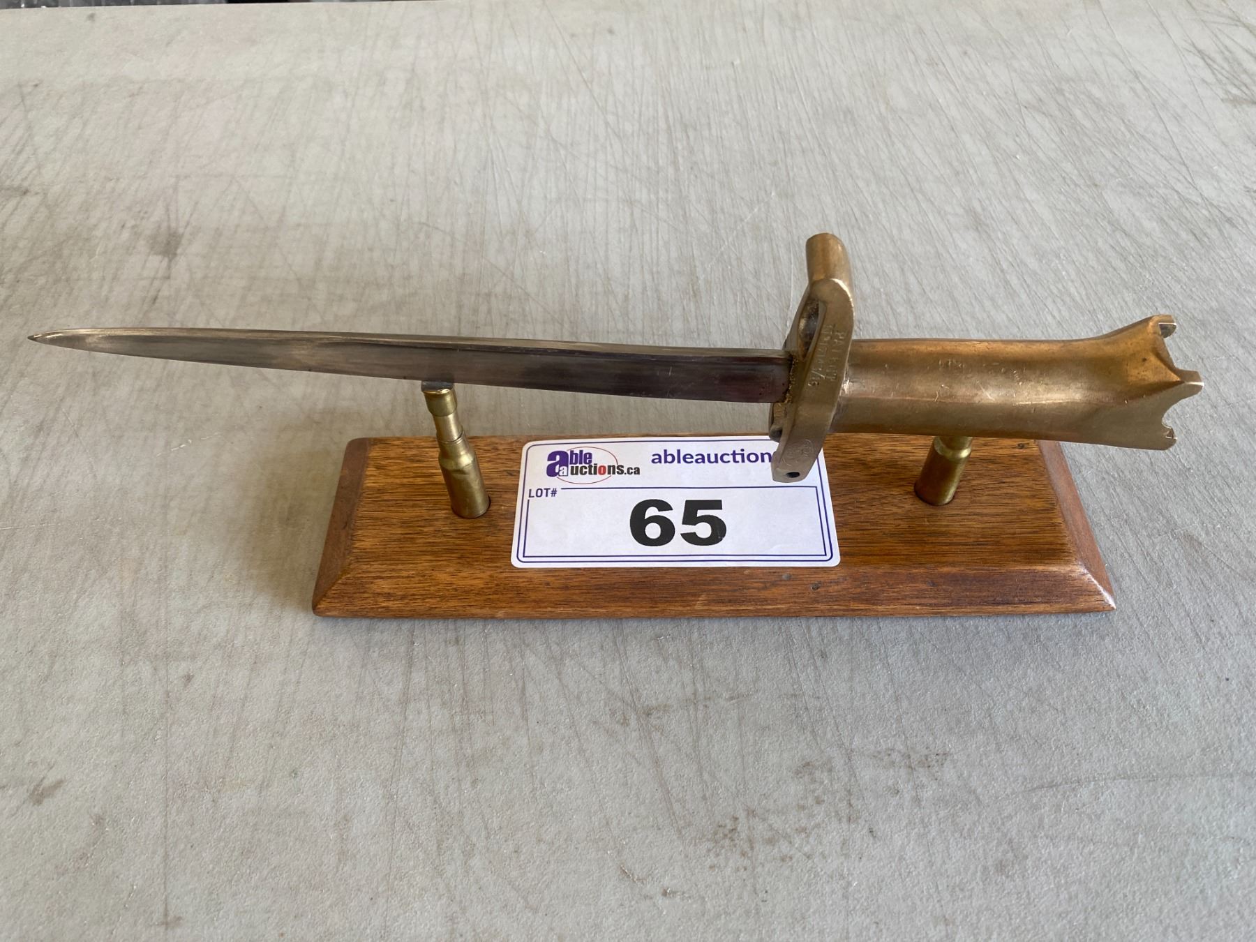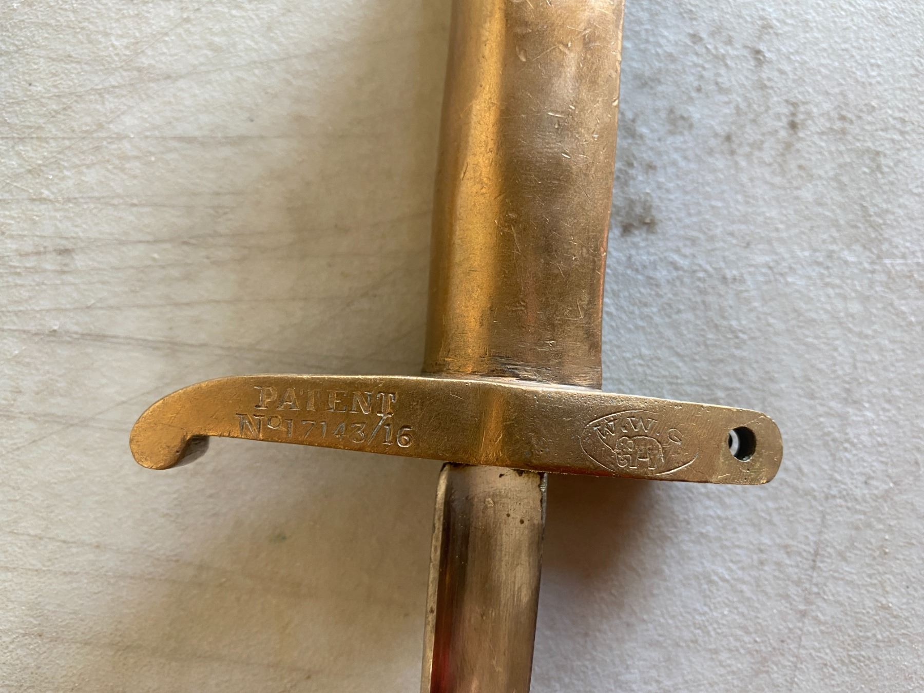 WW1 BRITISH PRITCHARD WEBLEY BAYONET WITH WWG ELEPHANT MARKING & DISPLAY STAND