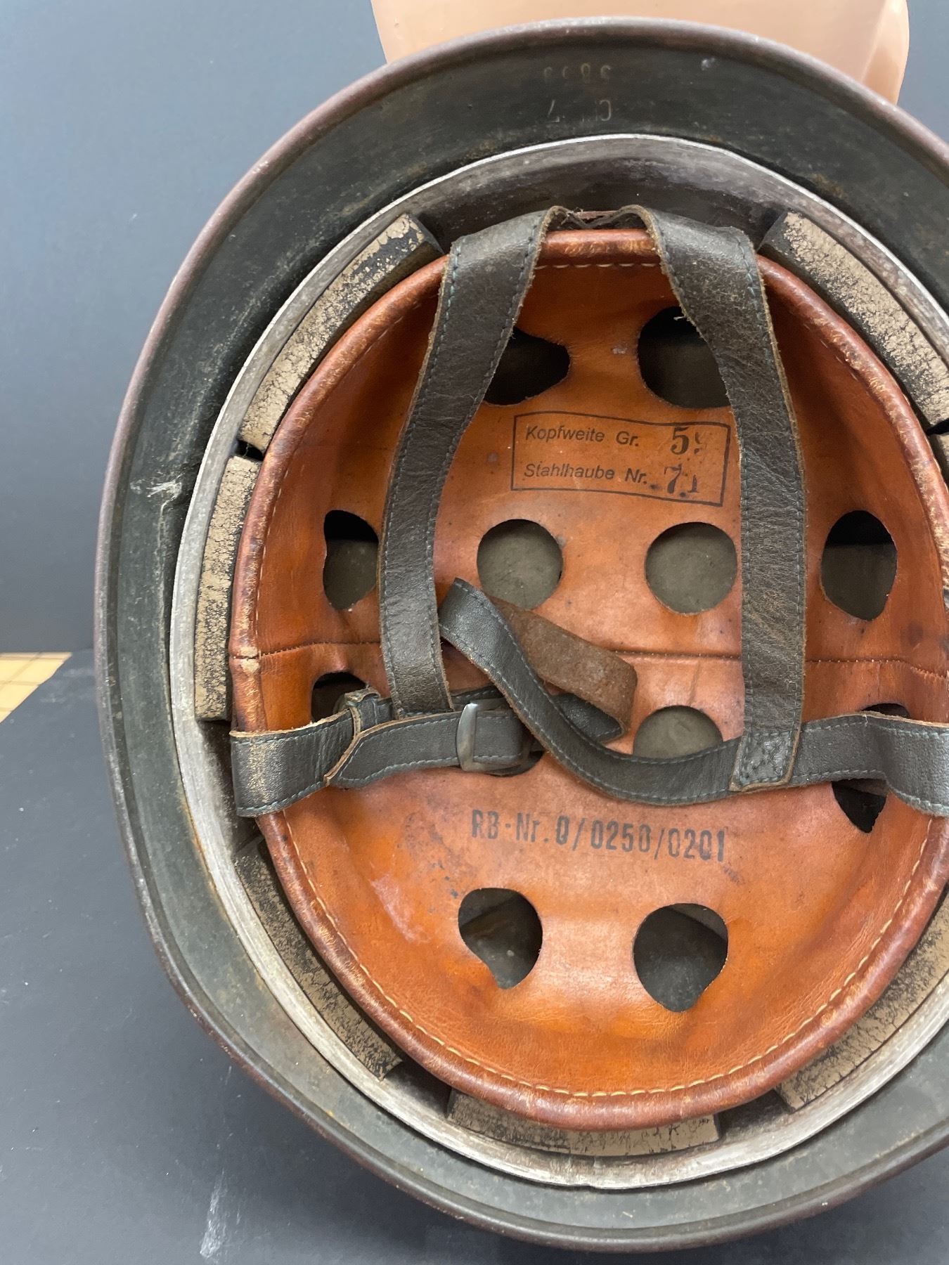 WW2 WWII German Paratrooper Helmut Original with Replacement Liner and Chin Strap 7.25" 70 cm Approx.