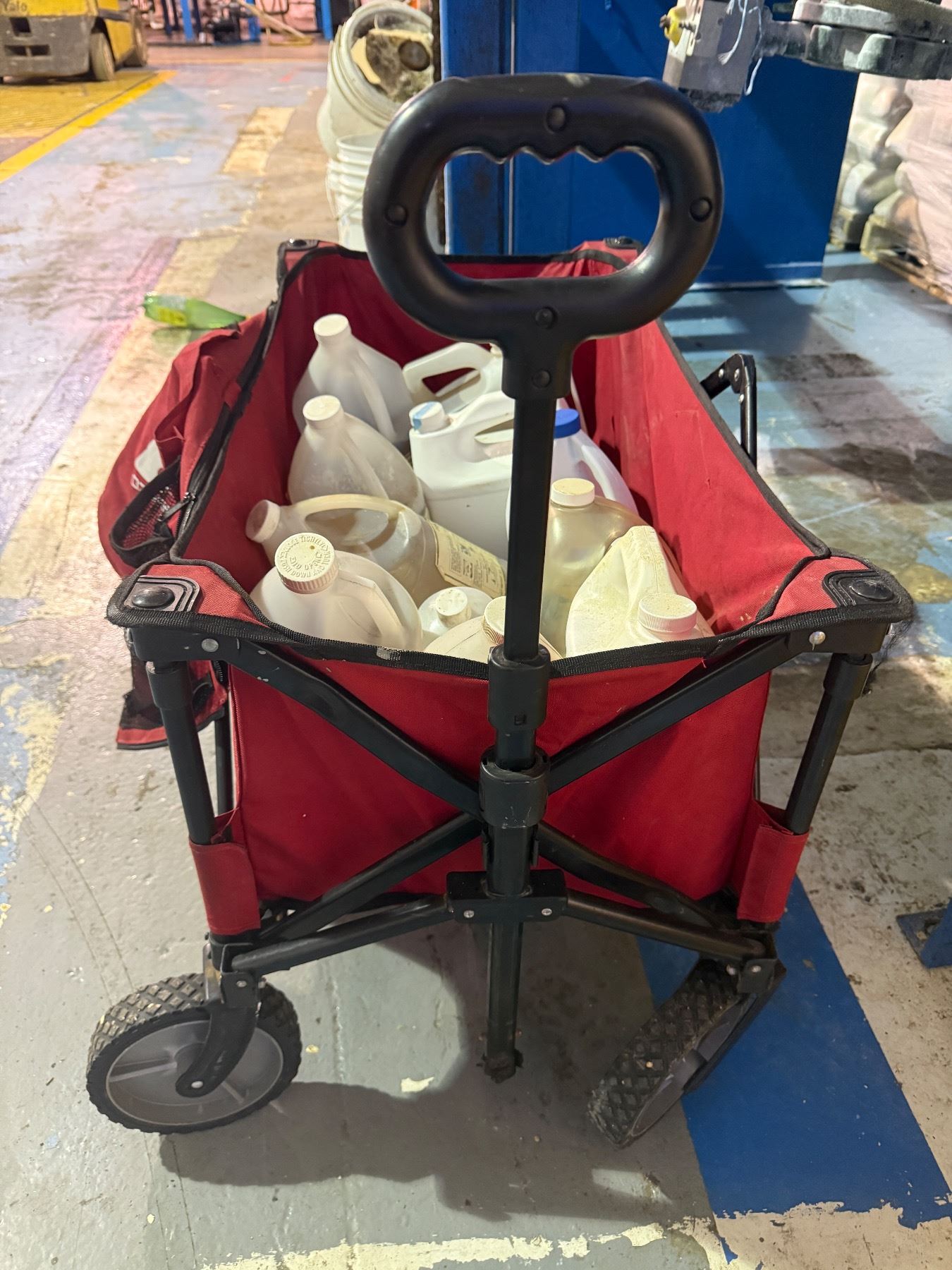 Wagon w/ misc. items including aluminum sulphate solution
