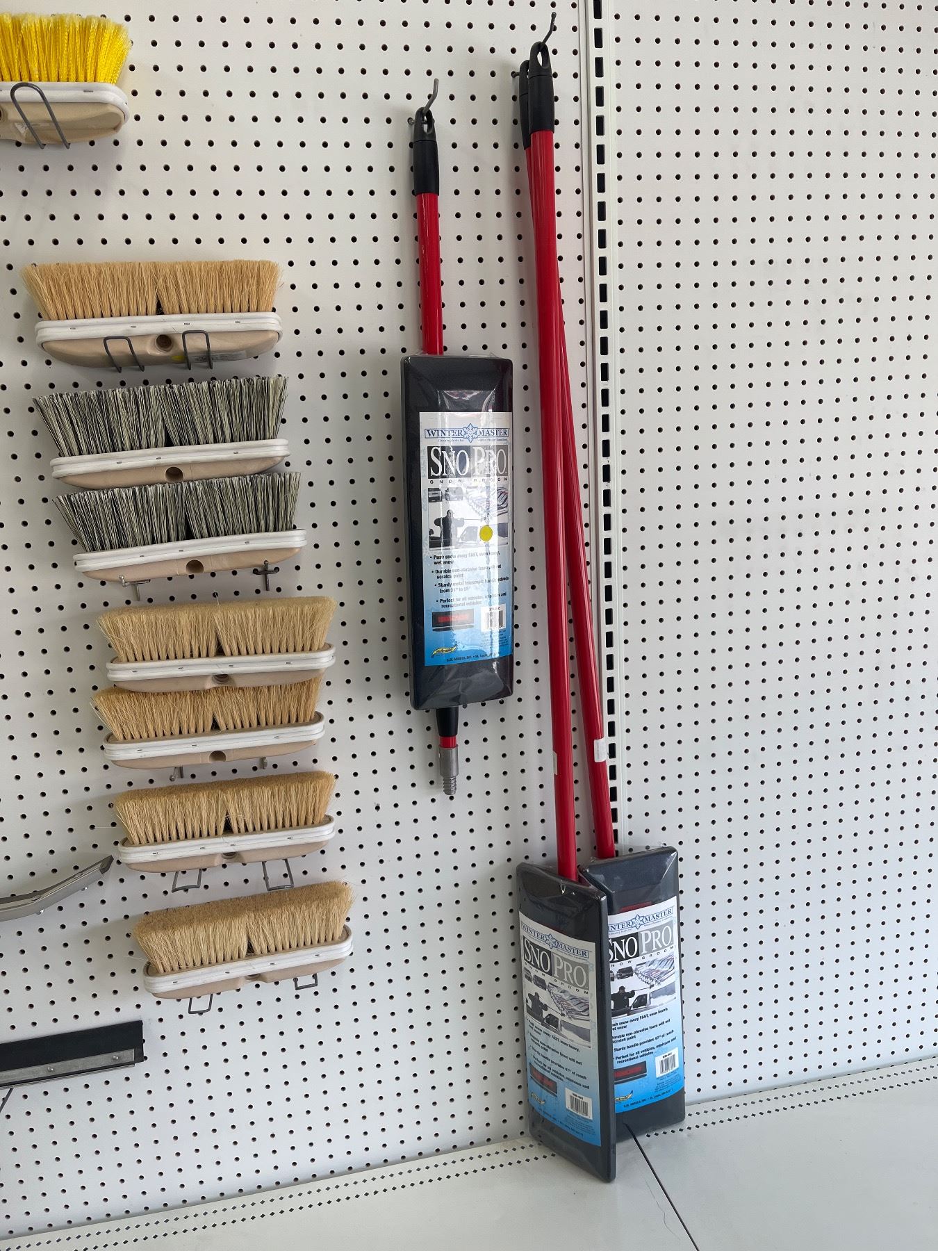Wall full of polishing pads, brooms, shammys, surface prep and more