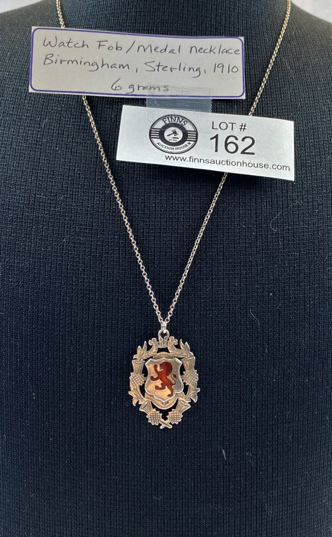 Watch Fob/ Medal Necklace Birmingham, Sterling 1910 6 Grams