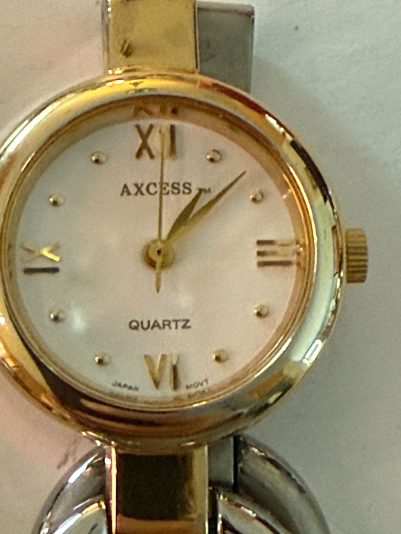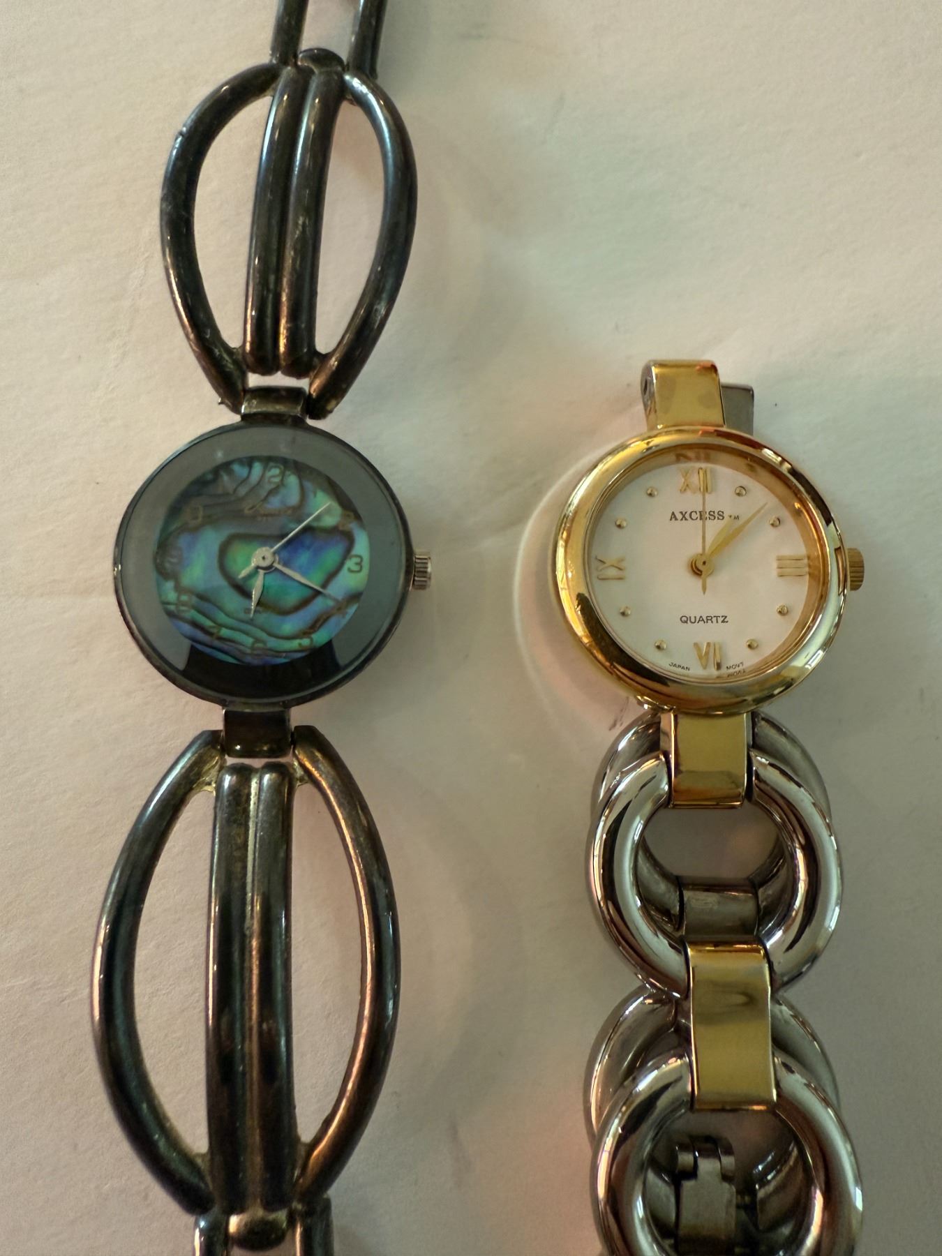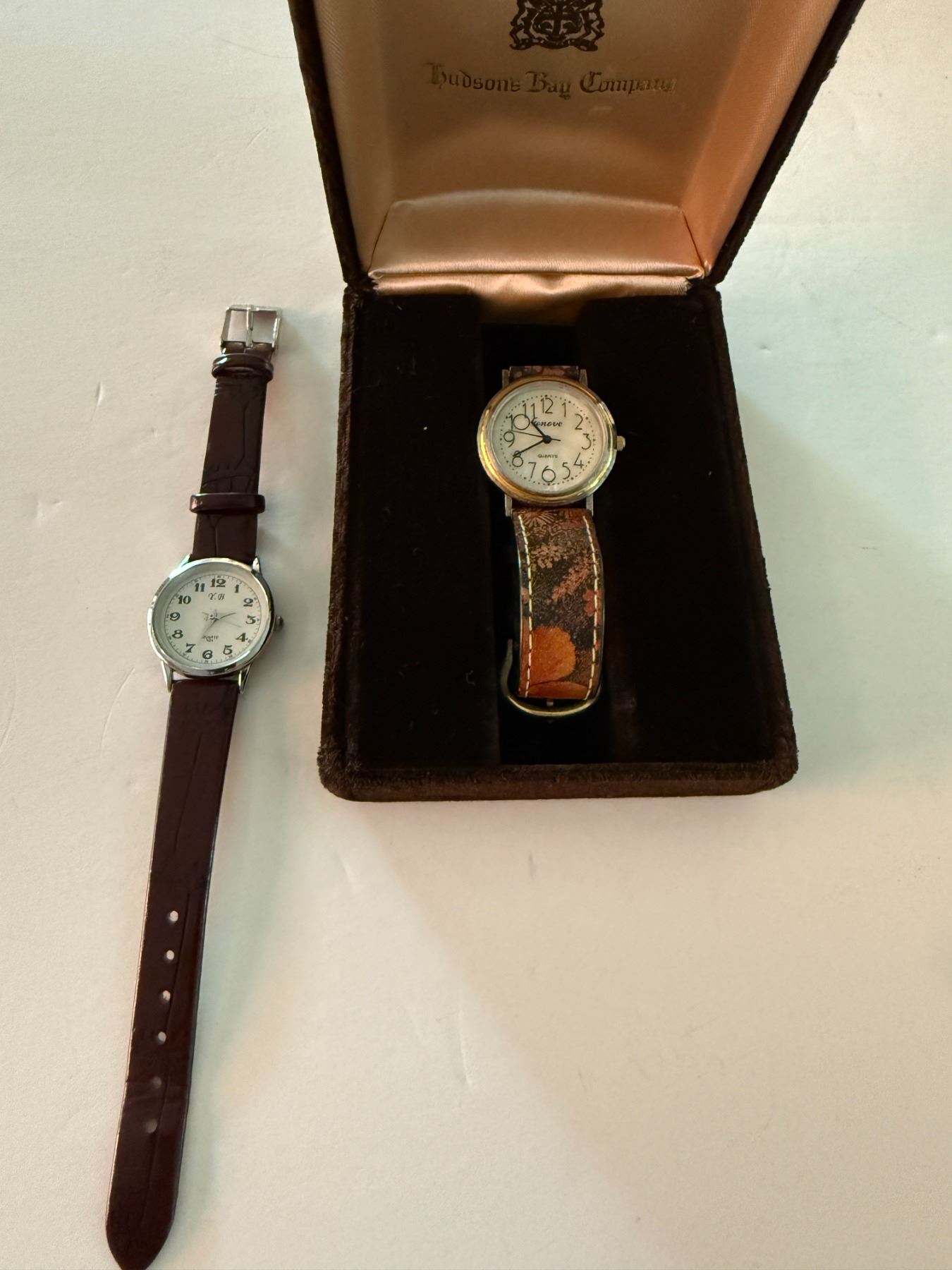 Watches A: Leather straps (2), Axcess by Gruen, Geneve, Royale, Vincci Paris, others. Untested. Some straps need repair.