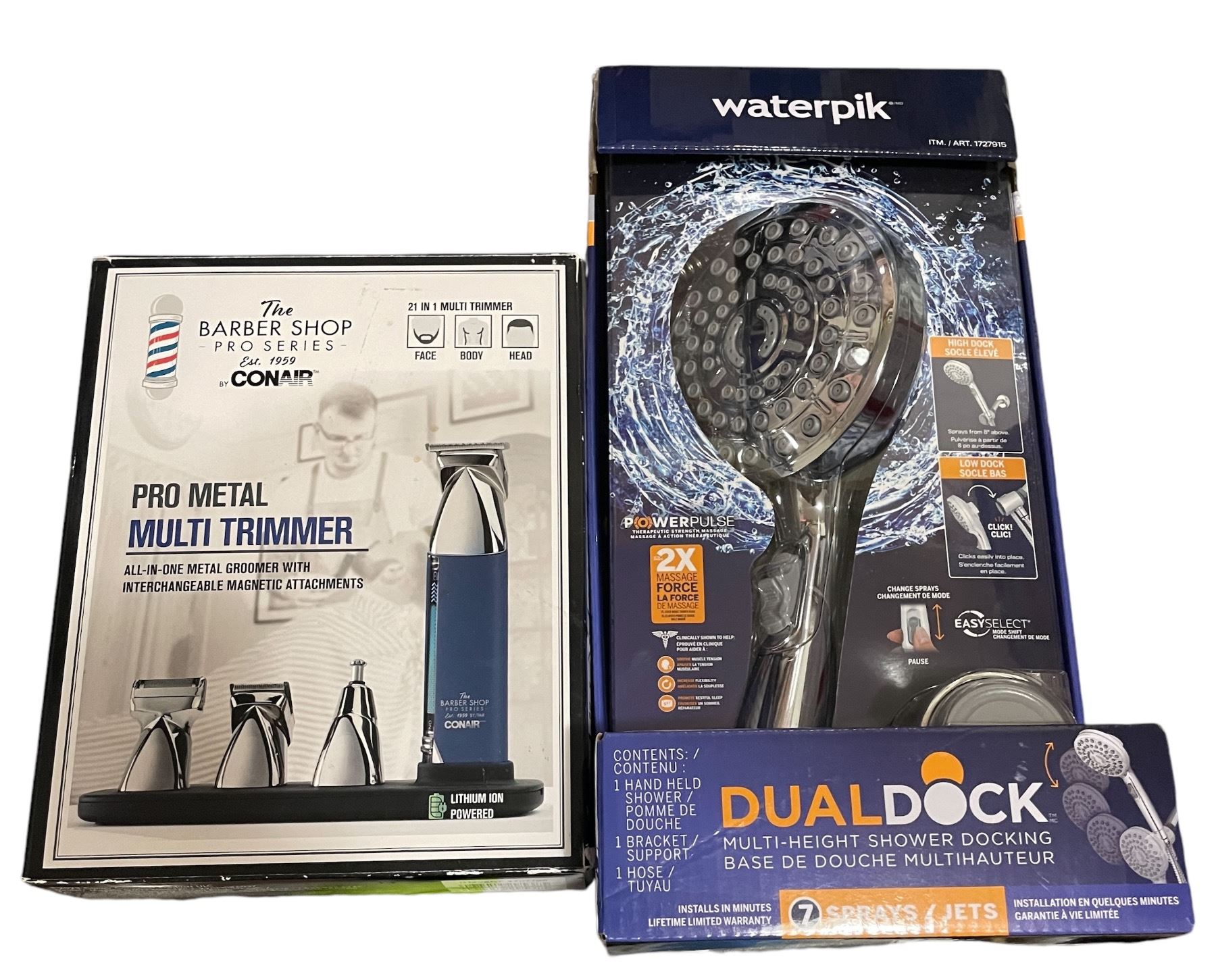 Waterpik dual dock shower docking and The Barber Shop Pro Series multi-trimmer