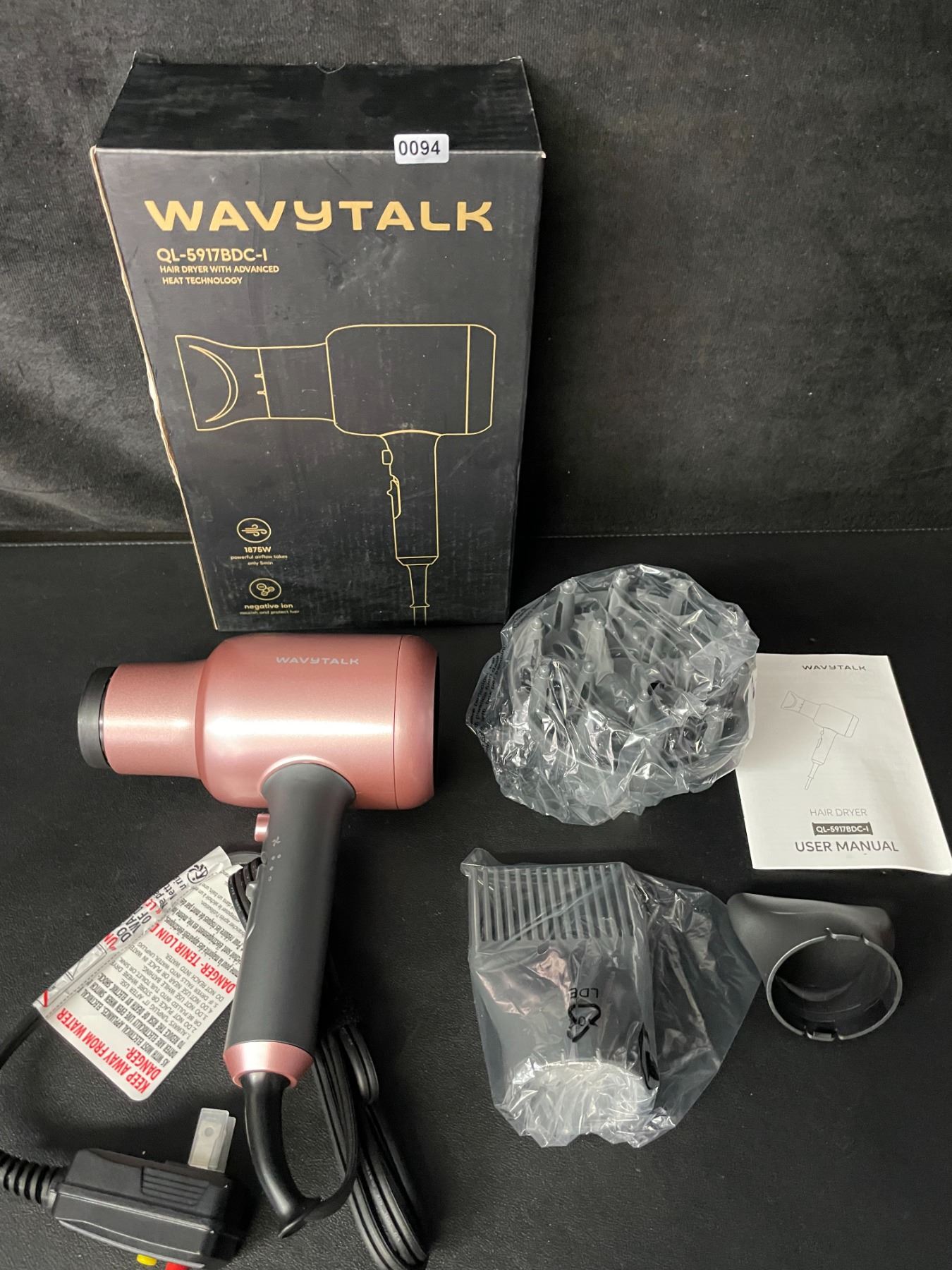- Wavytalk Ionic Hair Dryer with Diffuser and Concentrator, Lightweight Quiet Blow Dryer, Powerful 1875 Watt Motor for Smooth and Fast Drying Hair, Rose Pink