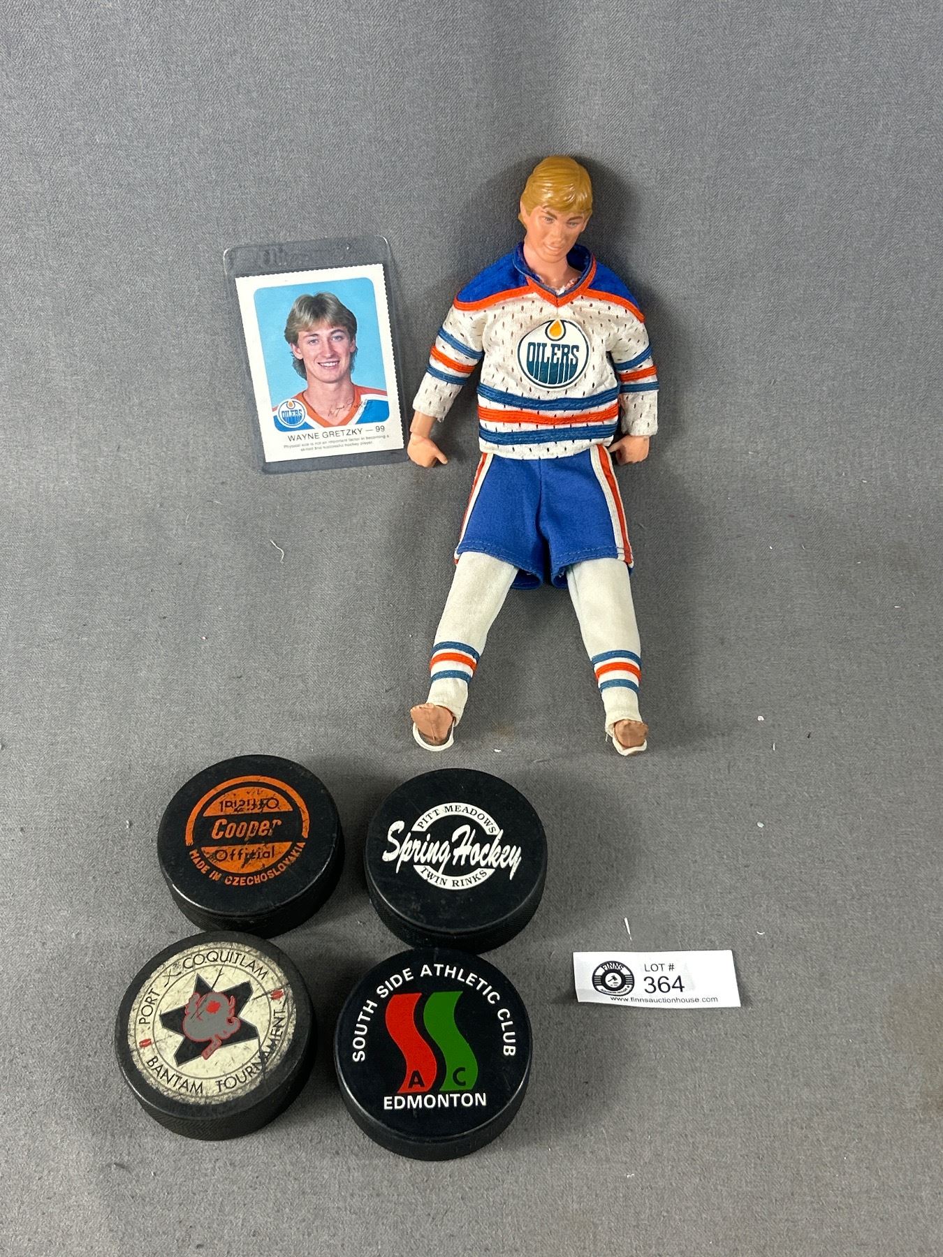 Wayne Gretzky Action Figure with Card and 4 Pucks
