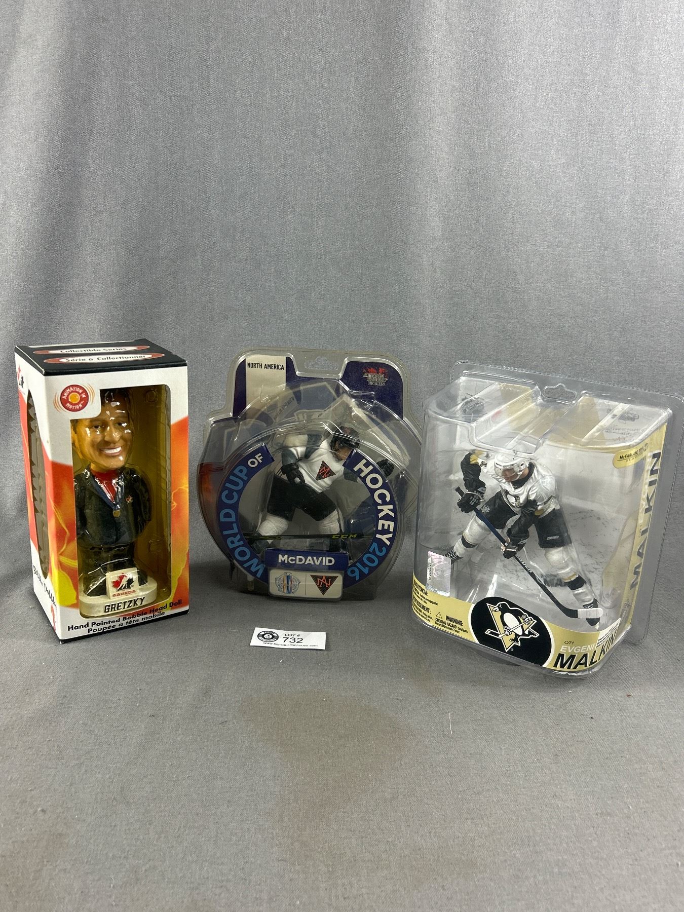 Wayne Gretzky Bobble Head + 2 Hockey Figurines in Packages