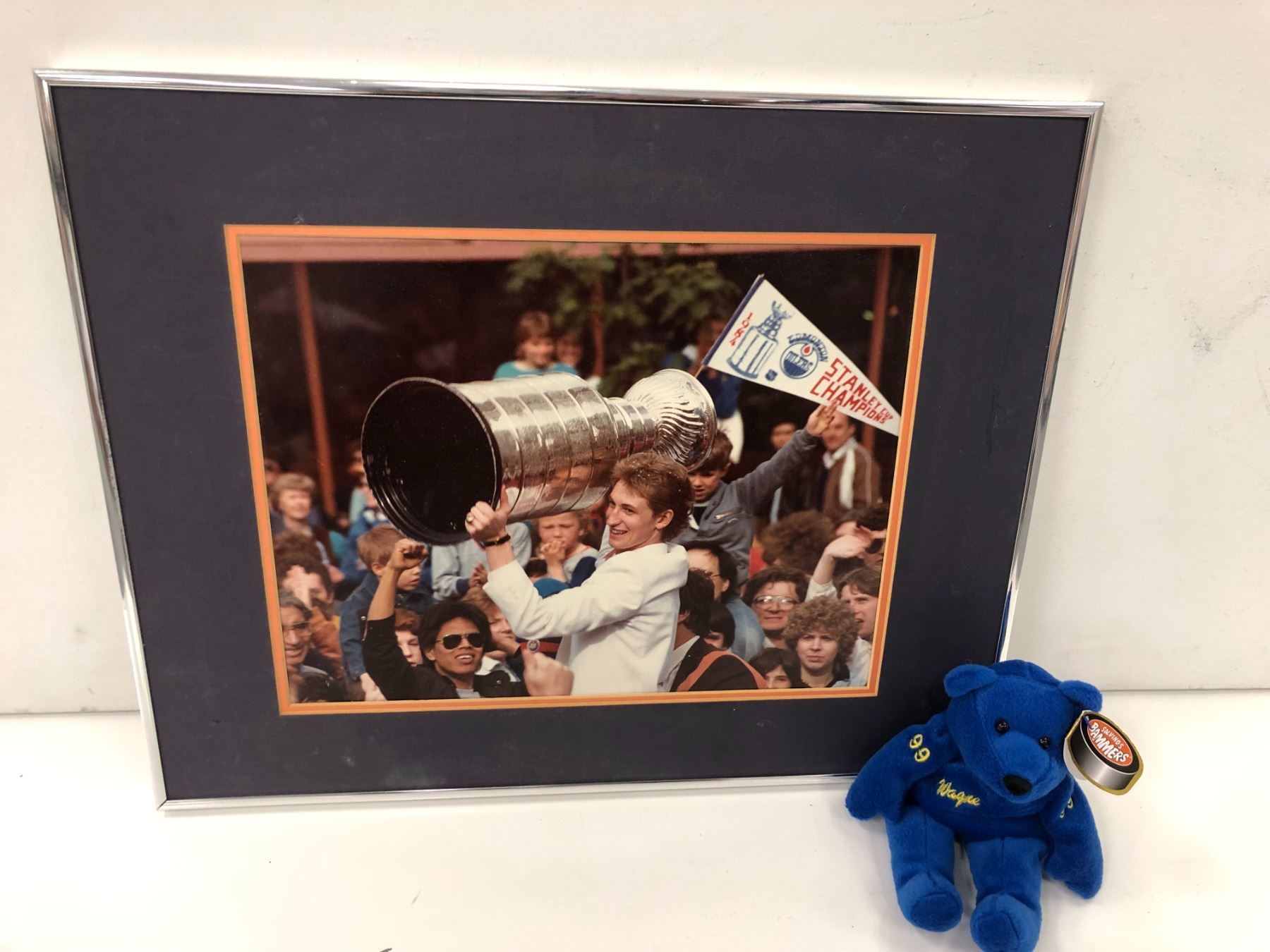 Wayne Gretzky framed Stanley cup print & #99 beanie baby